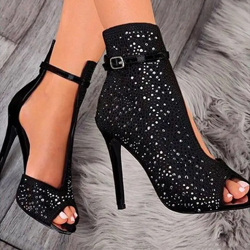 Женские туфли на высоком каблуке-шпильке, с кристаллами и блестками