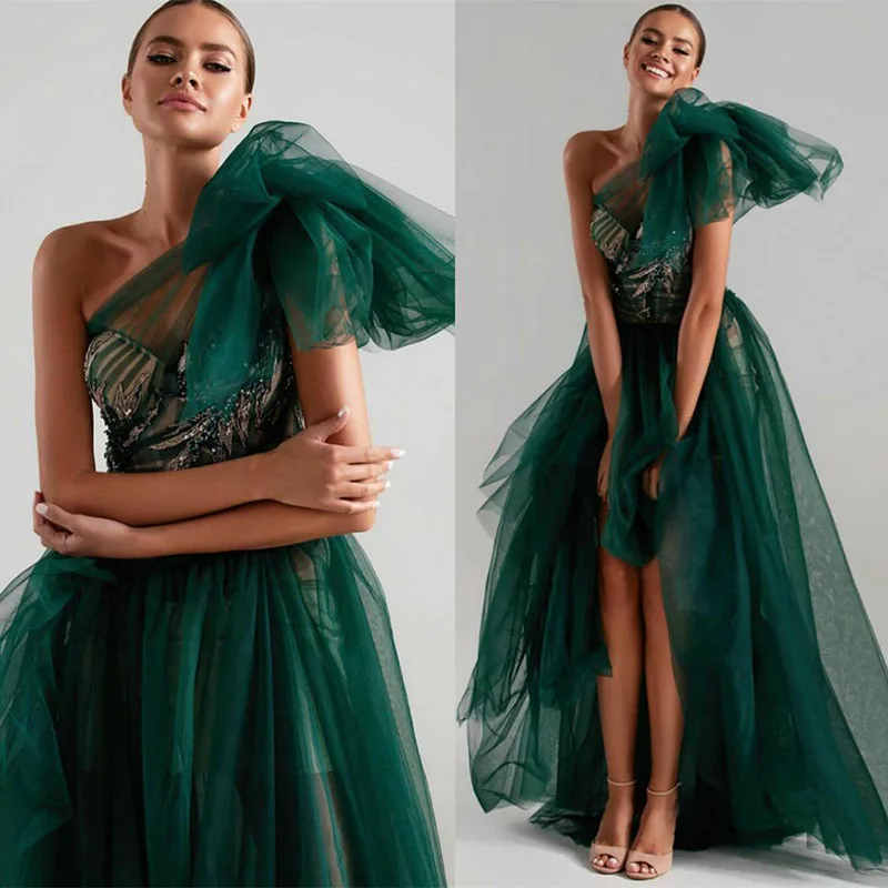 Женское вечернее платье на одно плечо, ТРАПЕЦИЕВИДНОЕ кружевное с аппликацией из бусин платье для выпускного вечера