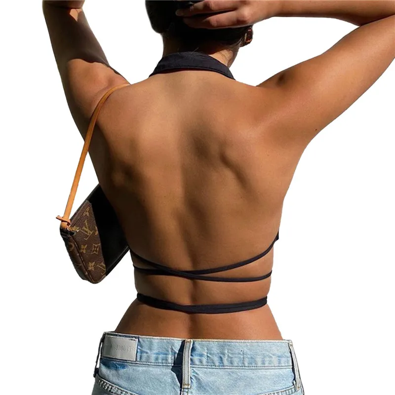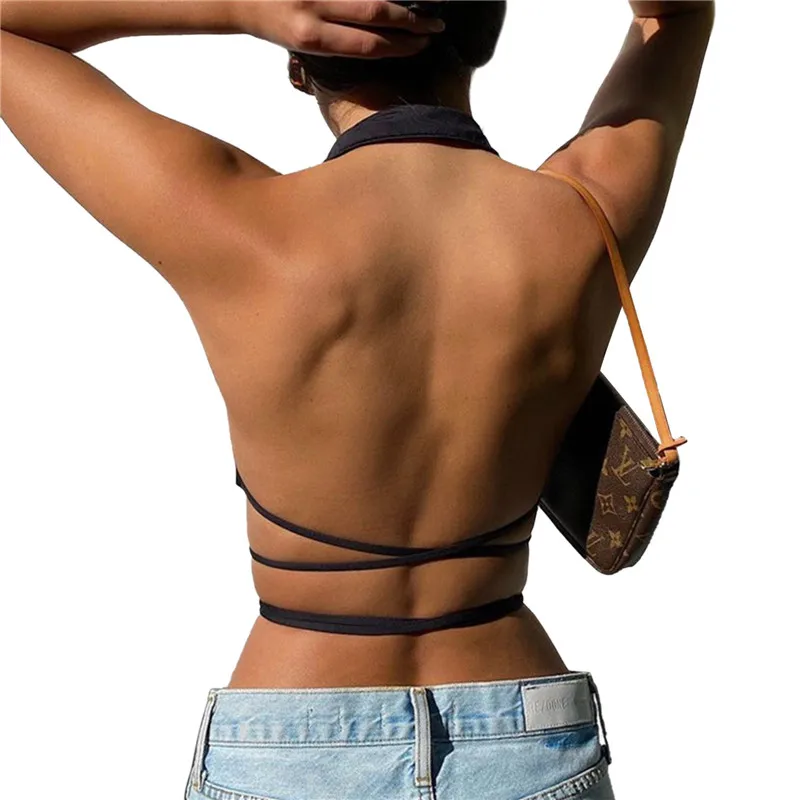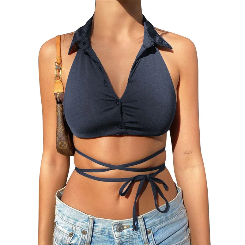 Майка женская однотонная с открытой спиной, пикантный топ на завязках, на пуговицах, облегающий жилет с открытым пупком, топ на бретелях для повседневной носки