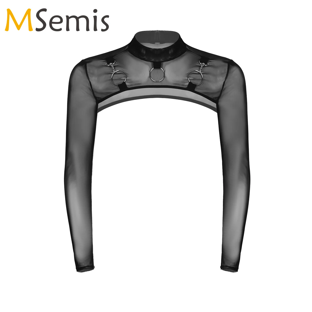 Мужской Прозрачный укороченный топ с длинным рукавом и круглым кольцом, декоративная футболка, клубная одежда