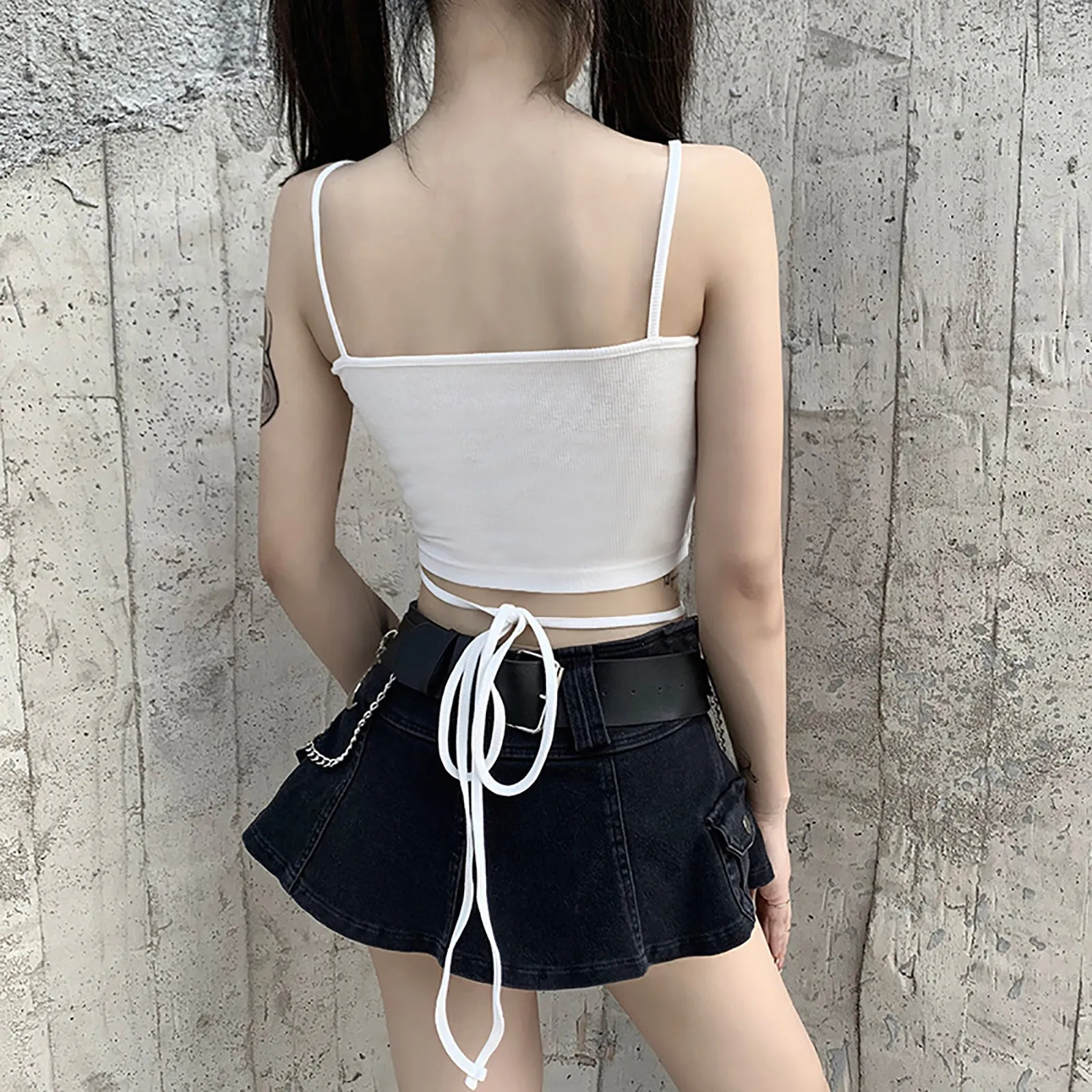 Женский темно-стильный Сексуальный Тонкий Топ с открытой спиной и цветочной вышивкой, женский укороченный топ без рукавов для женщин, одежда # YL 10