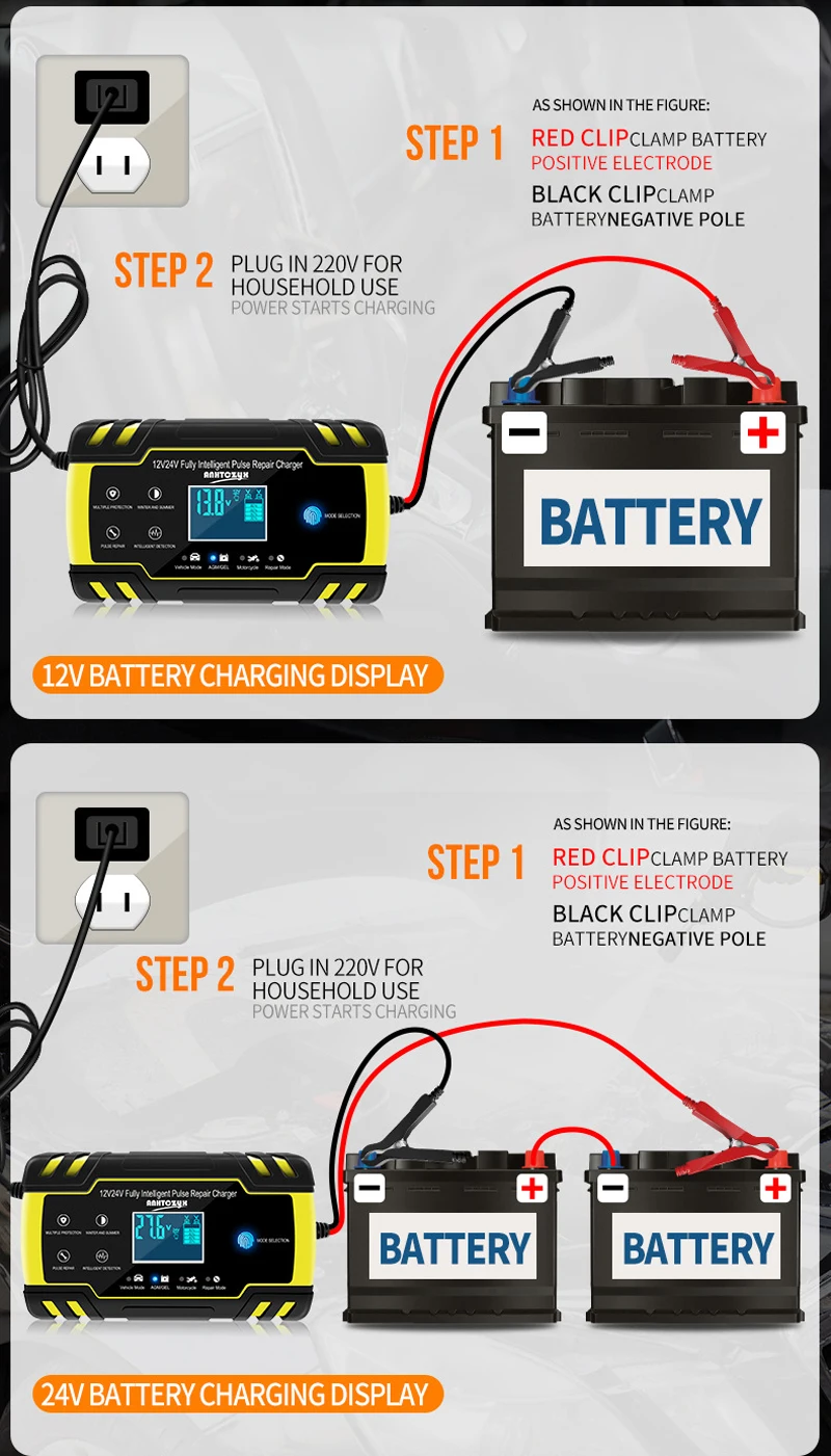 3-ступенчатый зарядные устройства подходят для большинства типов аккумуляторов, включая кальций, гель и AGM, мокрый батарей. Они также могут помочь восстановить дренажные и сульфированные батареи.
