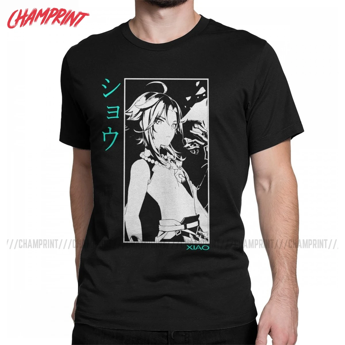 Футболка Xiao Genshin Impact мужская с забавным принтом, тенниска из 100% хлопка с круглым вырезом, майка с коротким рукавом в стиле аниме, Одежда большого размера