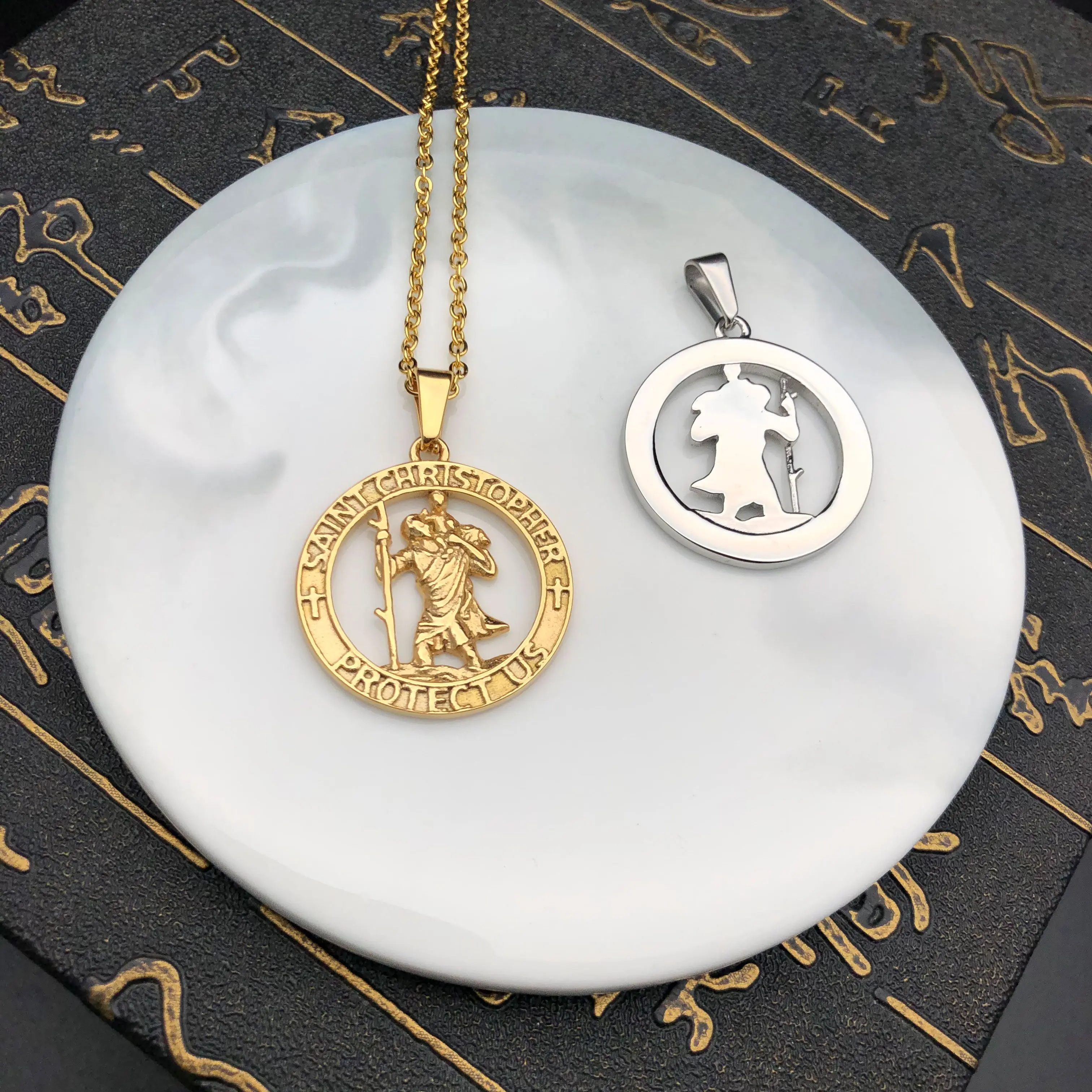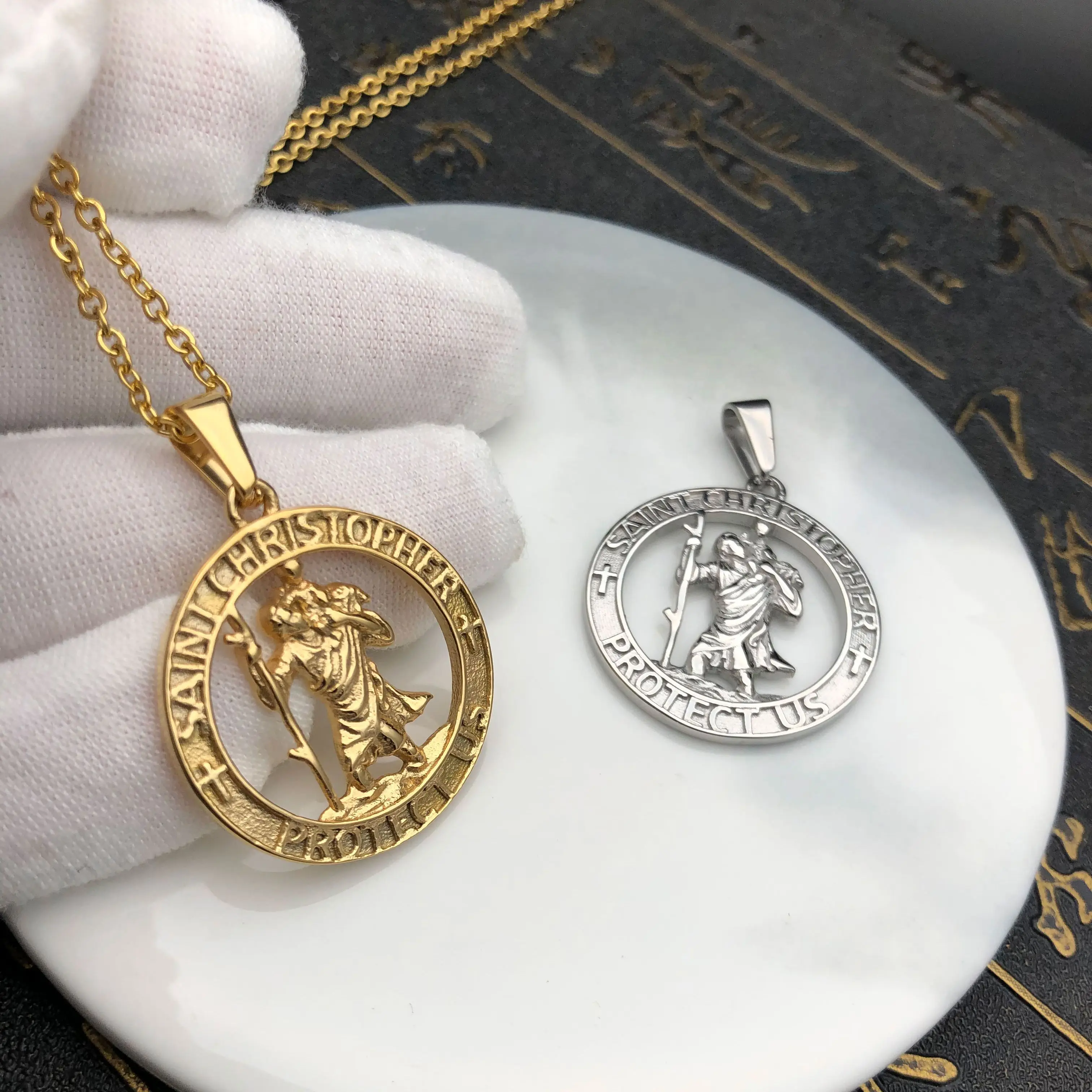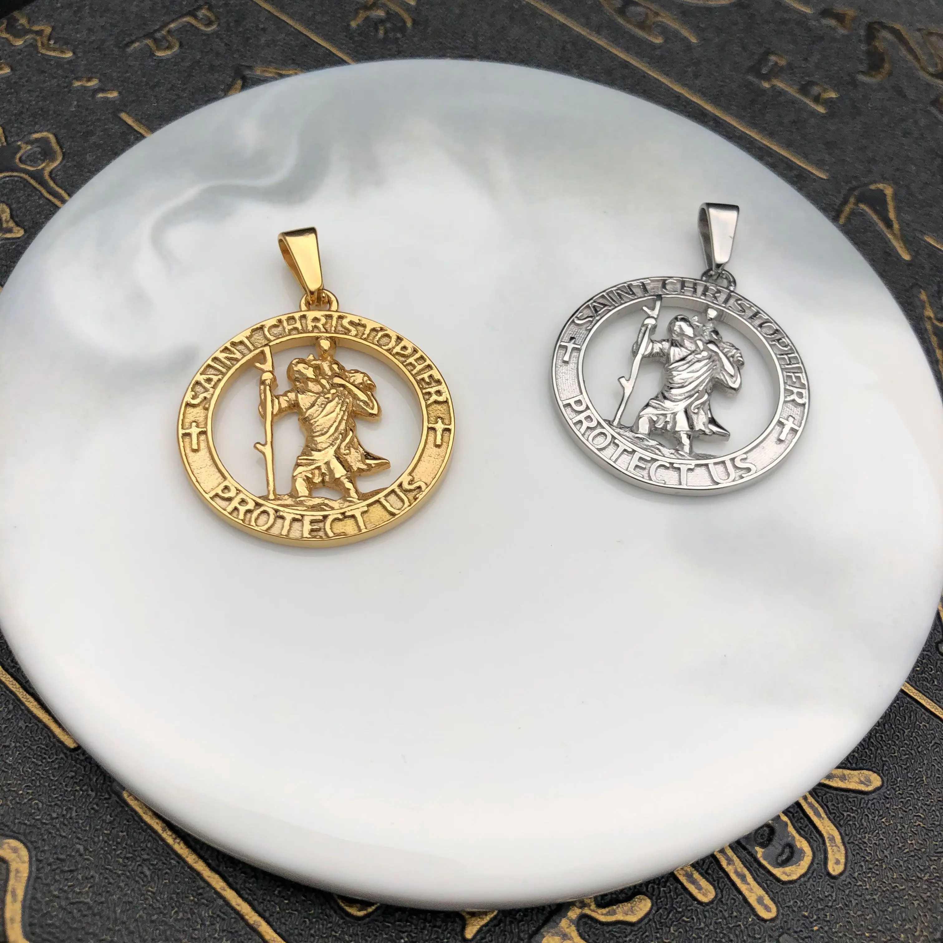 Винтажная круглая подвеска, преподобный Христофор, защита США, ожерелье, золото, нержавеющая сталь, протектор ювелирные изделия-талисманы, религиозная