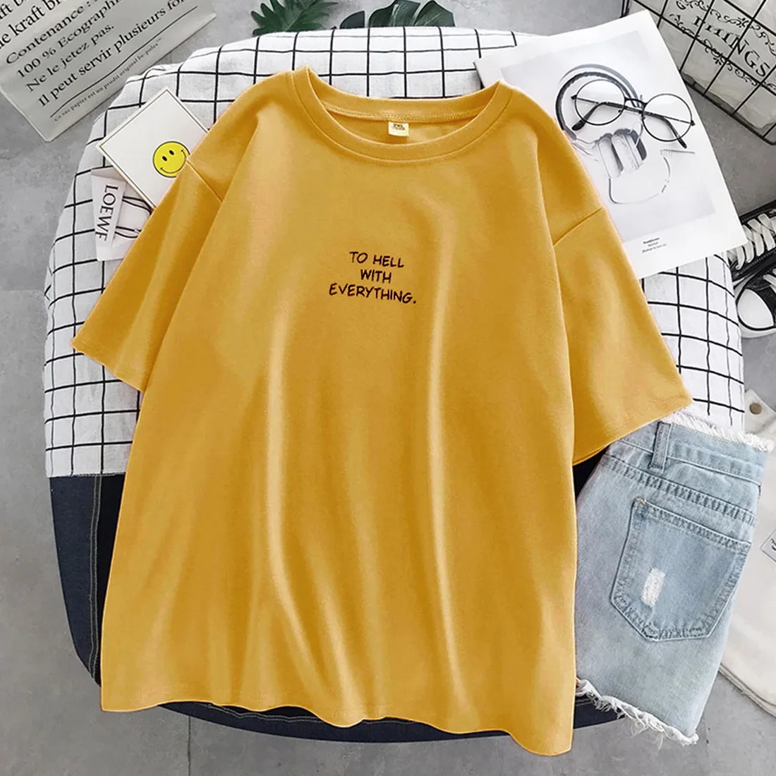 Футболка женская свободного покроя с коротким рукавом, топ с надпис...