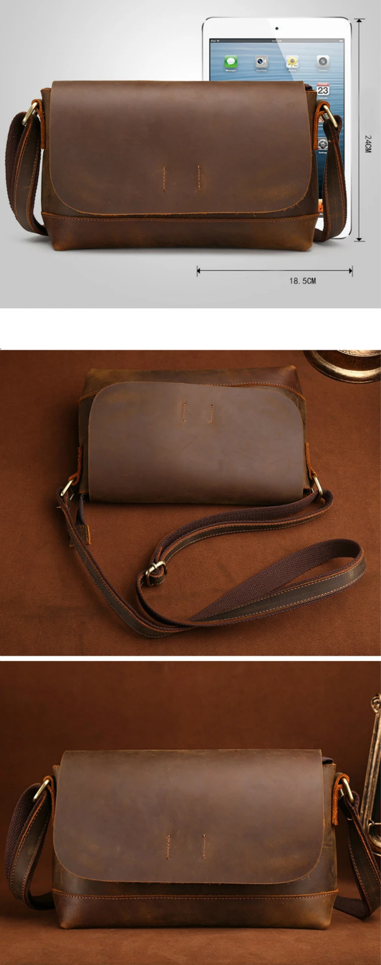 Сумка-мессенджер мужская из натуральной кожи, однотонная, с клапано...