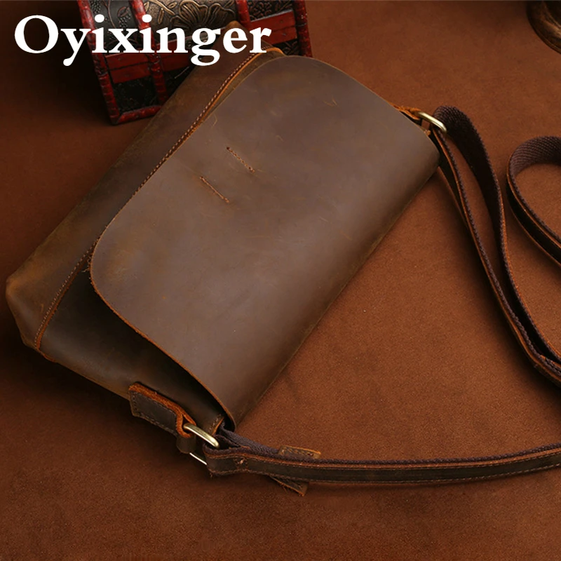OYIXINGER Ретро Мужская сумка из натуральной кожи сумки на плечо для мужчин винтажные Crazy Horse сумки через плечо из воловьей кожи одноцветные мини дорожные сумки