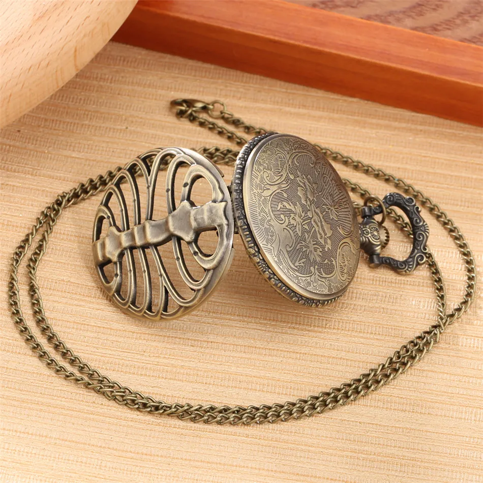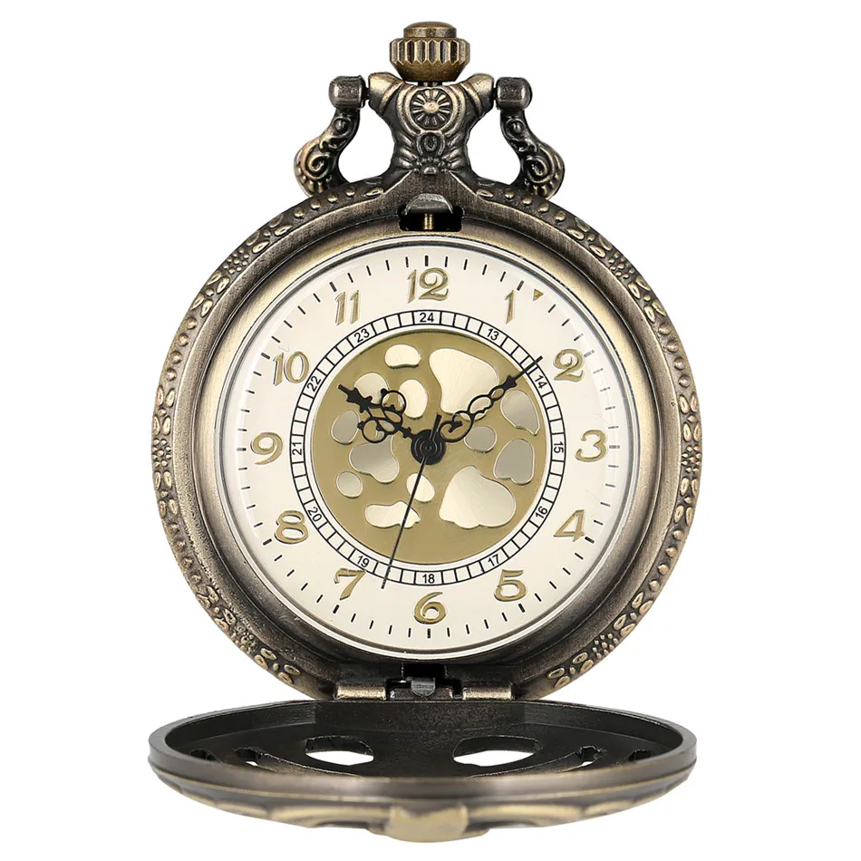 Карманные часы, бронзовые, кварцевые, в стиле ретро, карманные часы, винтажный аксессуар, подарки, циферблат с арабскими цифрами