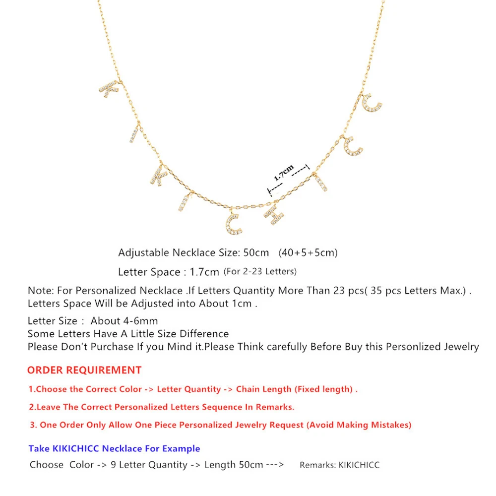 Примечание: для персонализированного ожерелья, если количество букв превышает 23 шт. (макс. 35 шт.), пространство для букв будет изменено примерно на 1 см