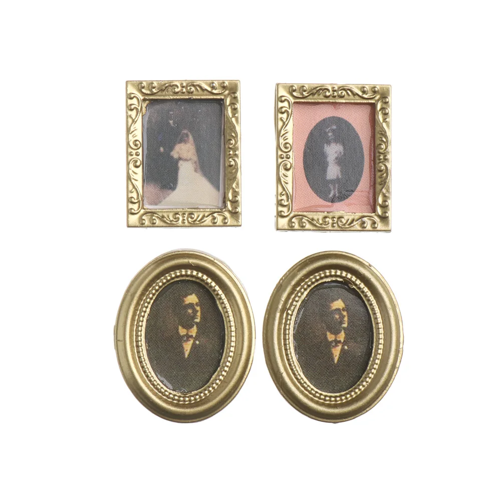 Мини-картина маслом в масштабе 1:12 для декора кукольного домика, детские игрушки, Миниатюрный Кукольный дом с орнаментом, изделия из смолы, винтажные фотографии в рамке