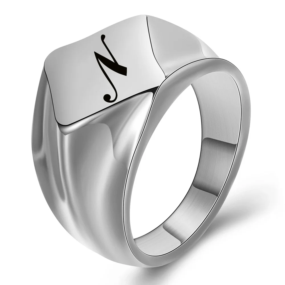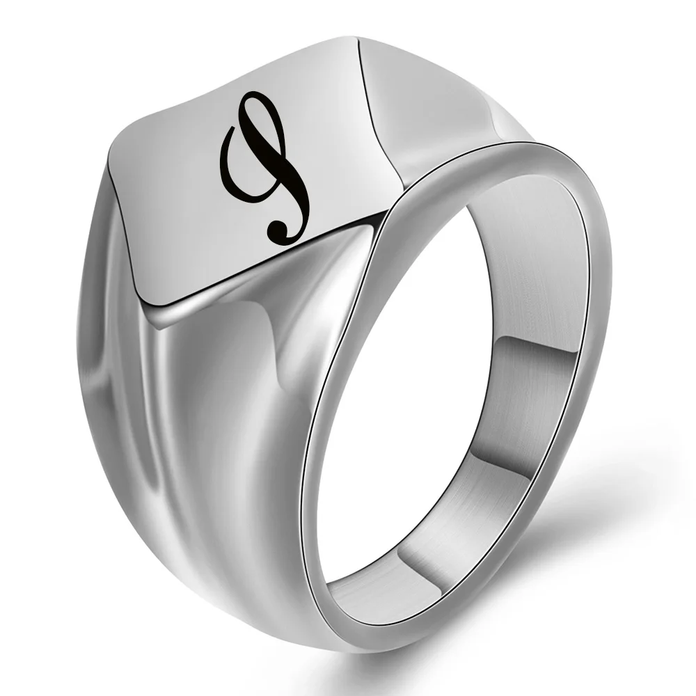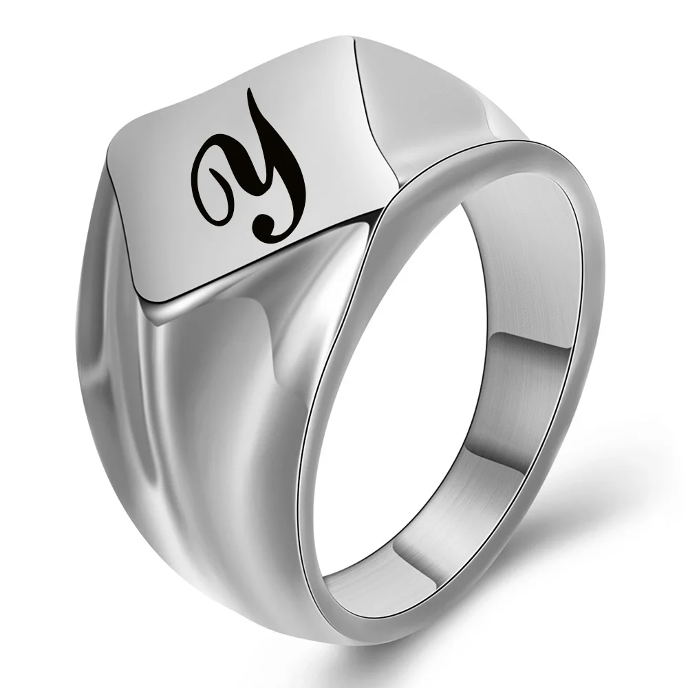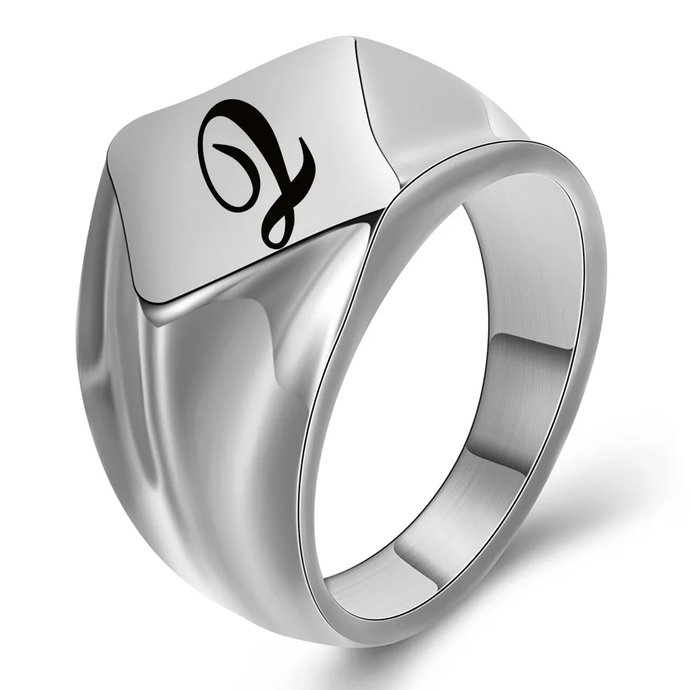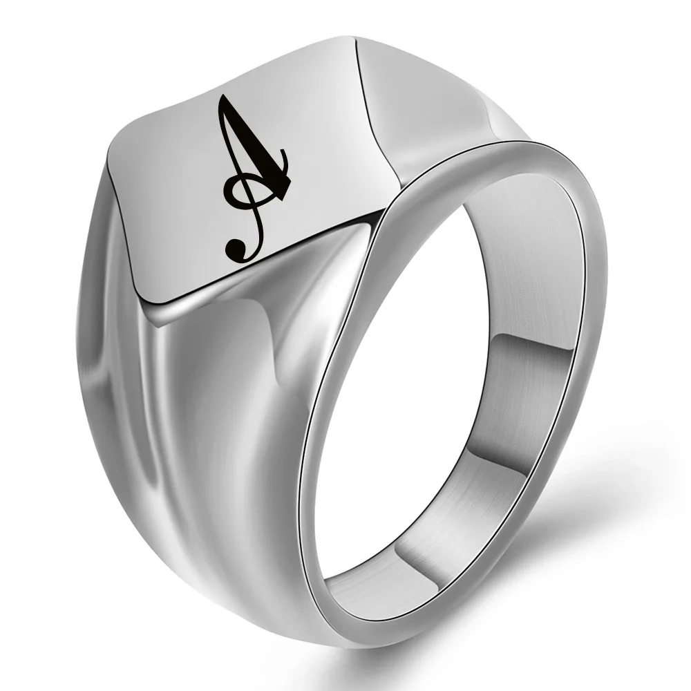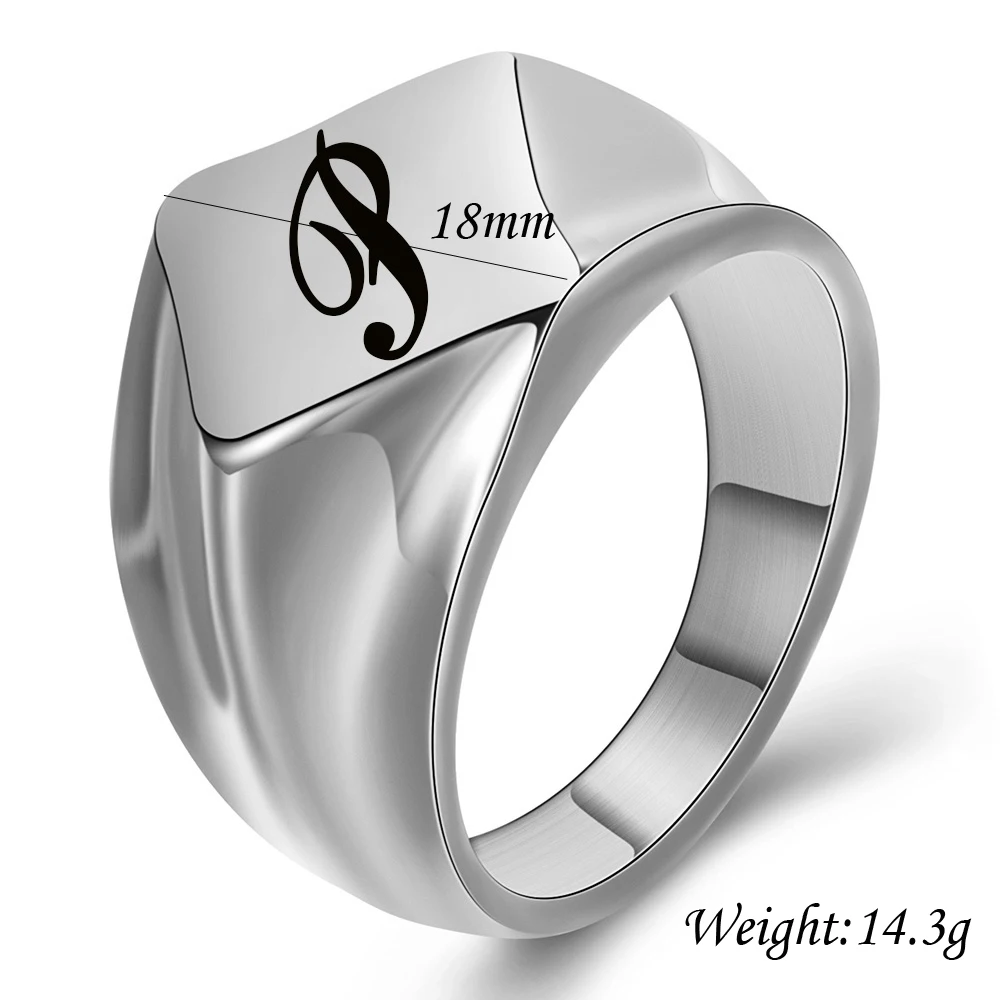 18 мм модная вывеска перстень штамп кольцо для мужчин Черная Нержавеющая Сталь с гравировкой персонализированное кольцо с буквами инициален ювелирные изделия на заказ
