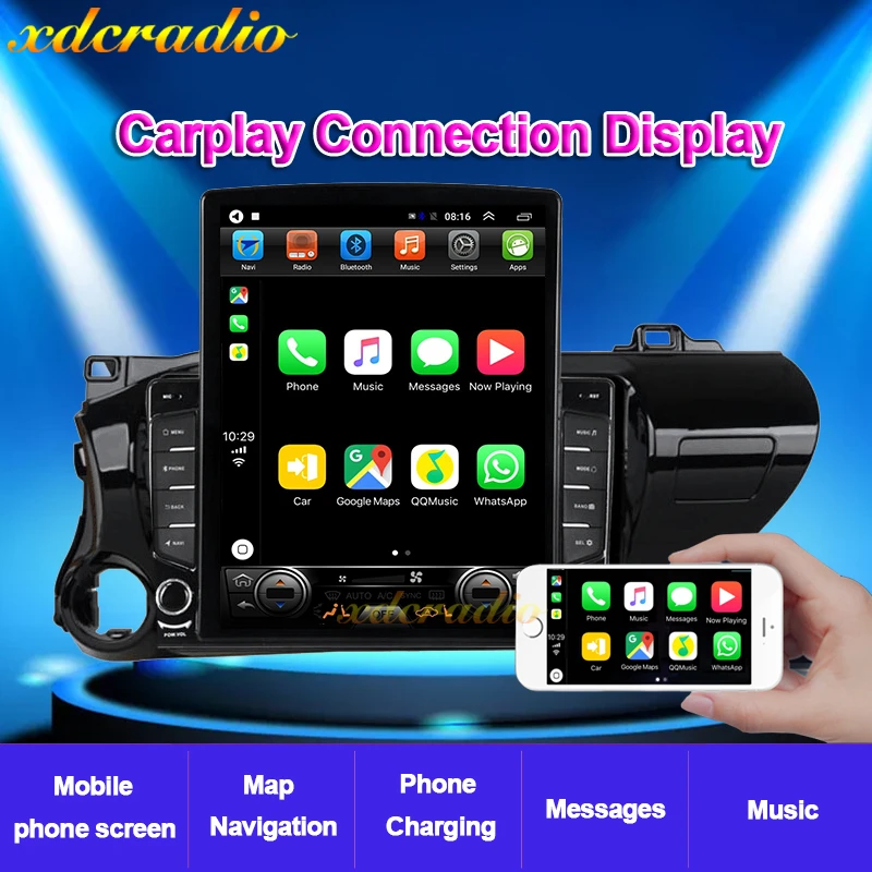 Автомагнитола Xdcradio 9,7 дюймов, вертикальный экран Tesla, Android 10,0, для Toyota Hilux, автомобильный радиоприемник, DVD, мультимедийный плеер, GPS-навигация, воспроизведение автомобиля
