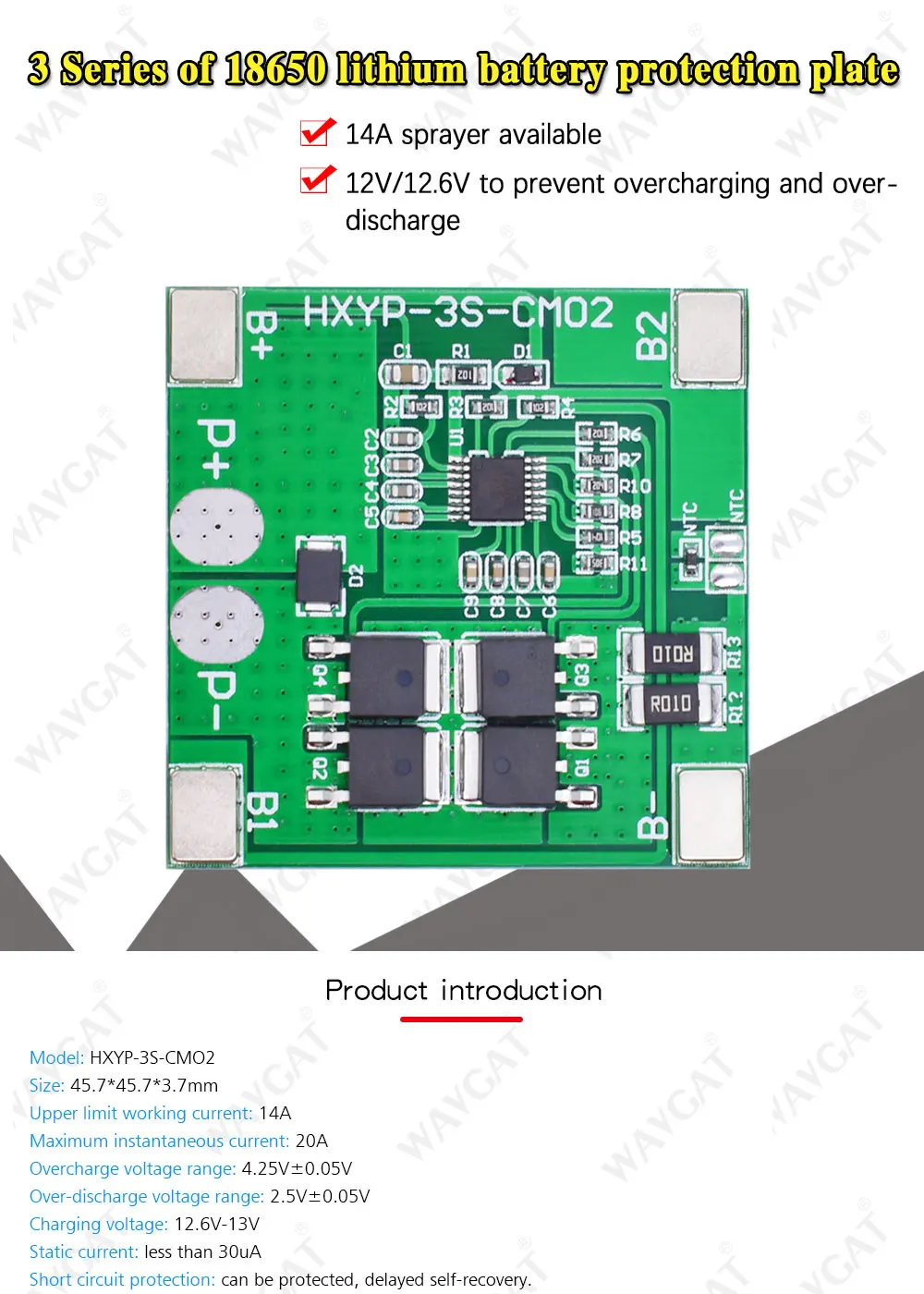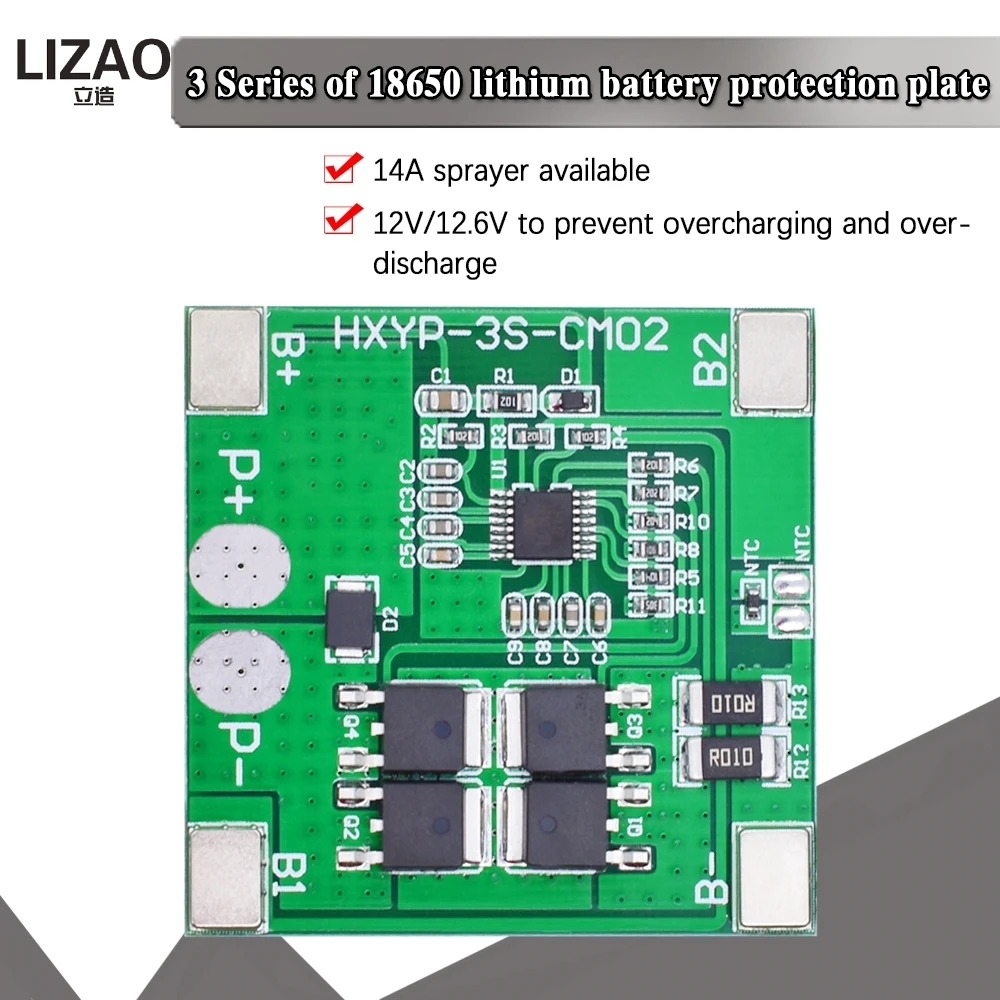 Плата защиты литиевой батареи 3S, 11,1 В, 12 В, 12,6 в, защита от перезарядки, перегрузки, тока разряда 14 а, 18650, литий-ионный Lipo-пакет, модуль BMS
