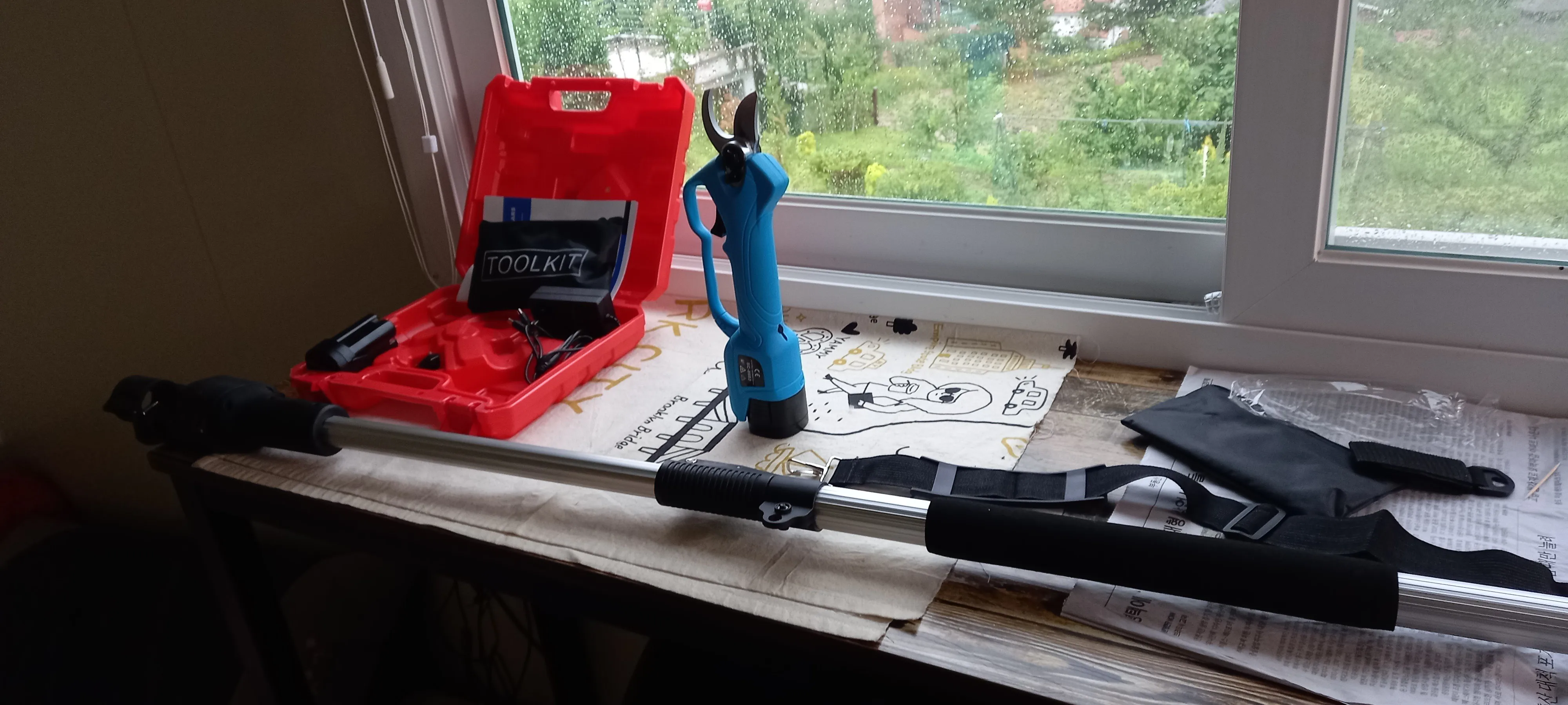 Посылка:● 1 электрические ножницы для обрезки деревьев● 1 зарядное устройство● 1 отвертка● Литиевые батареи-2 шт.● 3 гаечных ключаПредупреждение:1. Из-за ручного измерения допускается погрешность в 1-3 см, спасибо2. Из-за проблем со съемкой, таких как освещение, может быть Хроматическая аберрация, будьте осторожны.