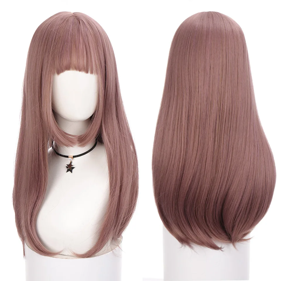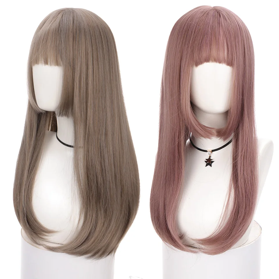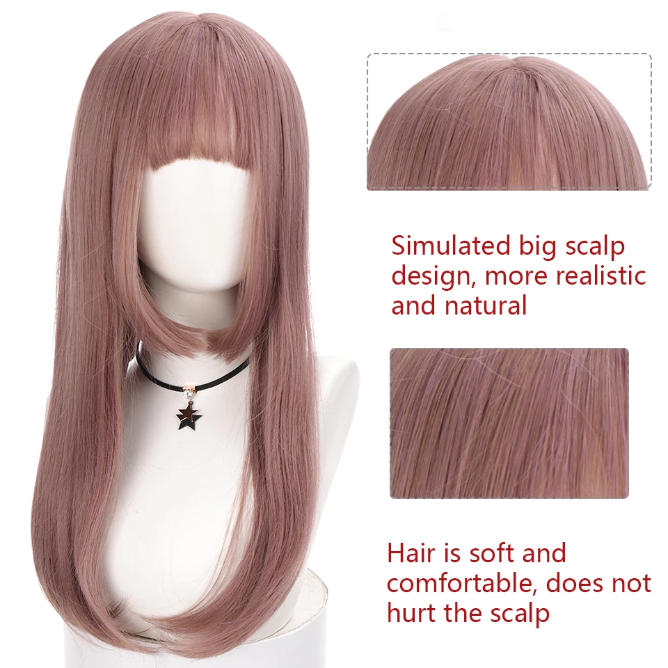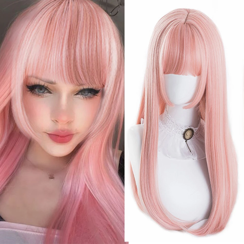 Парик HOUYAN розовые длинные прямые волосы с челкой женский натурал...