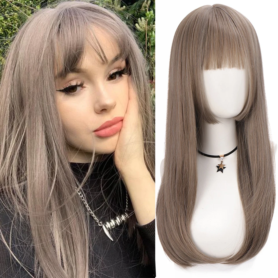 Женская Синтетическая челка с длинными прямыми волосами для косплея
