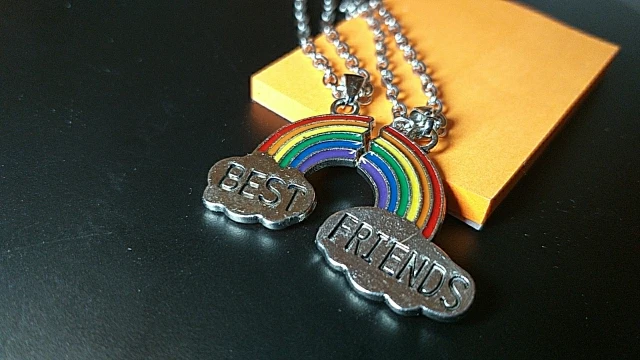 Ожерелье с гравировкой в виде радужного сердца, 2 шт.компл., ожерелье лучших друзей