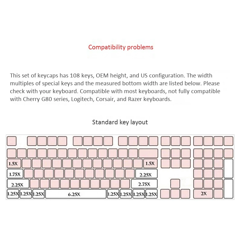 Характеристика: 1. Процесс сублимации краски пятисторонний процесс сублимации краски имеет яркие цвета и ощущение комфорта2. Материал PBT изготовлен из прочного материала PBT, износостойкий и маслостойкий3. Колпачки для ключей, полный внешний вид, эргономичный дизайн, простота установки.4. Благодаря технологии окрашивания цвет яркий и не выцветает.5. Используя высококачественные маслостойкие материалы PBT, легенда-сублимационная Сублимация красителя. Некоторые колпачки для ключей, особенно пробелы и колпачки для ключей ESC, представляют собой 5-сторонние красители. Колпачки для ключей прочные и долговечные, толщина стенки 1,3 ~ 1,6 мм.Спецификация:Тип: Механическая клавиатураВодонепроницаемость: Поддержка водонепроницаемостиМатериал: ПБТЦвет: цвет изображенияКлючевая технология: лазерная резьба PBTФункция подсветки: непрозрачный колпачокПроцесс сублимации.Количество ключей: 108 индивидуальностьЭтот набор колпачков имеет 108 клавиш, высоту и конфигурацию США. Кратные ширины специальных клавиш и измеренная нижняя ширина перечислены ниже, пожалуйста, проверьте клавиатуру в руке. Совместим с большинством клавиатур, не полностью совместим с клавиатурами Cherry G80, Logitech, Corsair и Razer.Посылка1 комплект белых клавиш с гравировкой PBTВ комплект входит только указанное выше содержимое, другие продукты в комплект не входят.Примечание: светильник вая съемка и различные дисплеи могут привести к тому, что цвет товара на изображении будет немного отличаться от реального. Допустимая погрешность измерения +/- 1-3 см.