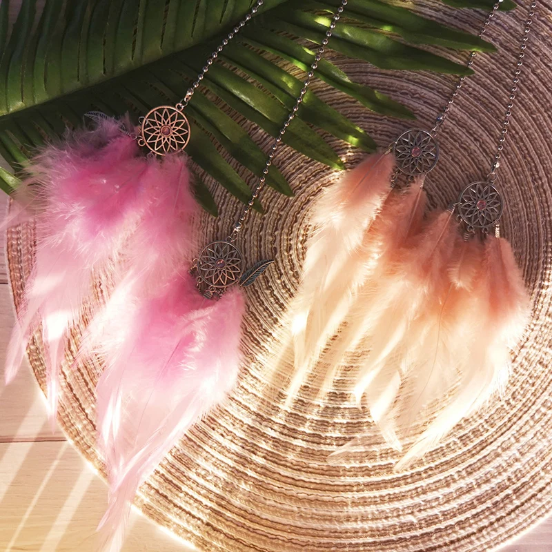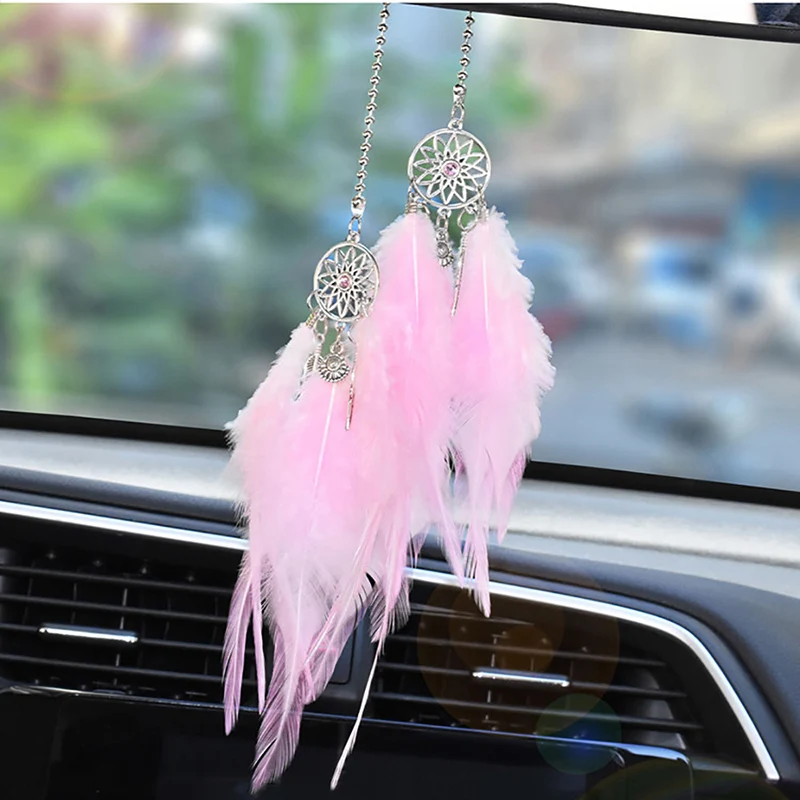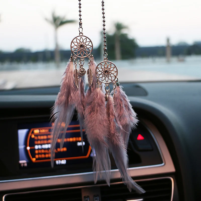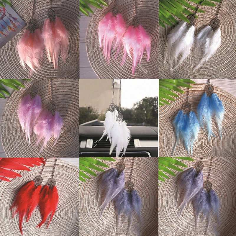 Подвесное украшение для зеркала заднего вида автомобиля, мини-кулон в виде Ловца снов, с натуральными перьями, ручная работа, Стайлинг автомобиля