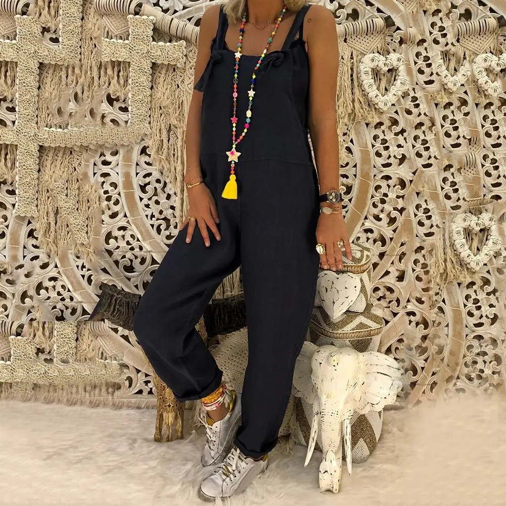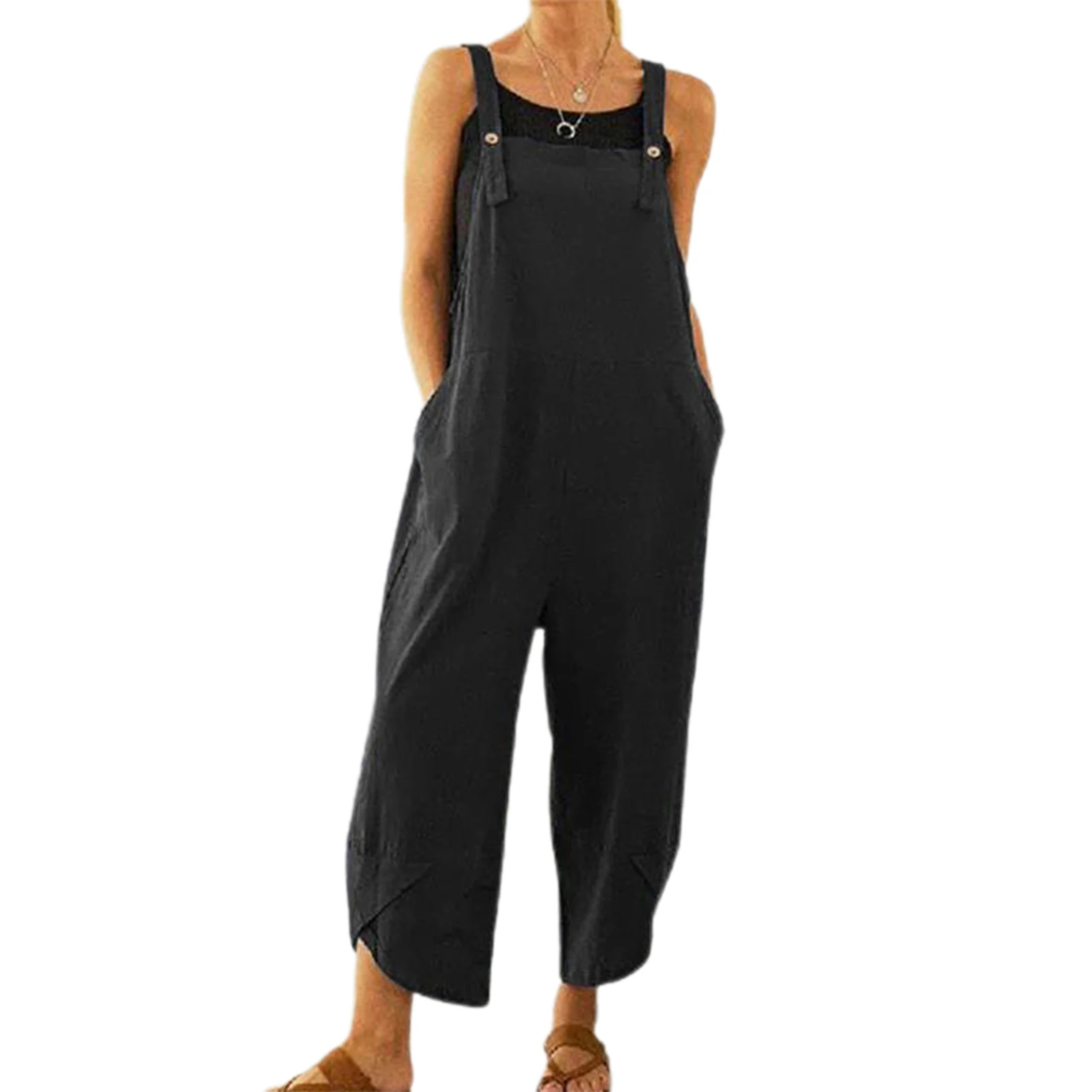 Комбинезон женский, однотонный, на регулируемых бретелях, без рукавов, с широкими штанинами