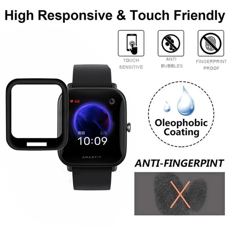 Защитная пленка для экрана Xiaomi Huami Amazfit Bip UPopS Pro Smart Watch HD, 3D изогнутые края, полный защитный чехол для Amazfit Bip