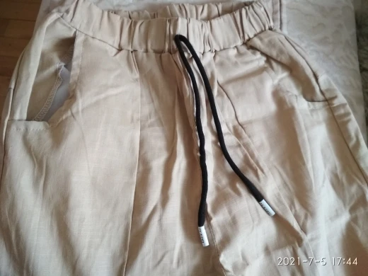 в прошлом году заказывала такие же брюки, очень понравились. в этом году пришли - пошив ужасен, карманы не одинаковые, с одной стороны видна белая подкладка, бирючины разного размера по ширине. одно огорчение. надо выбрасывать. может у этого продавца не заказывайте.
