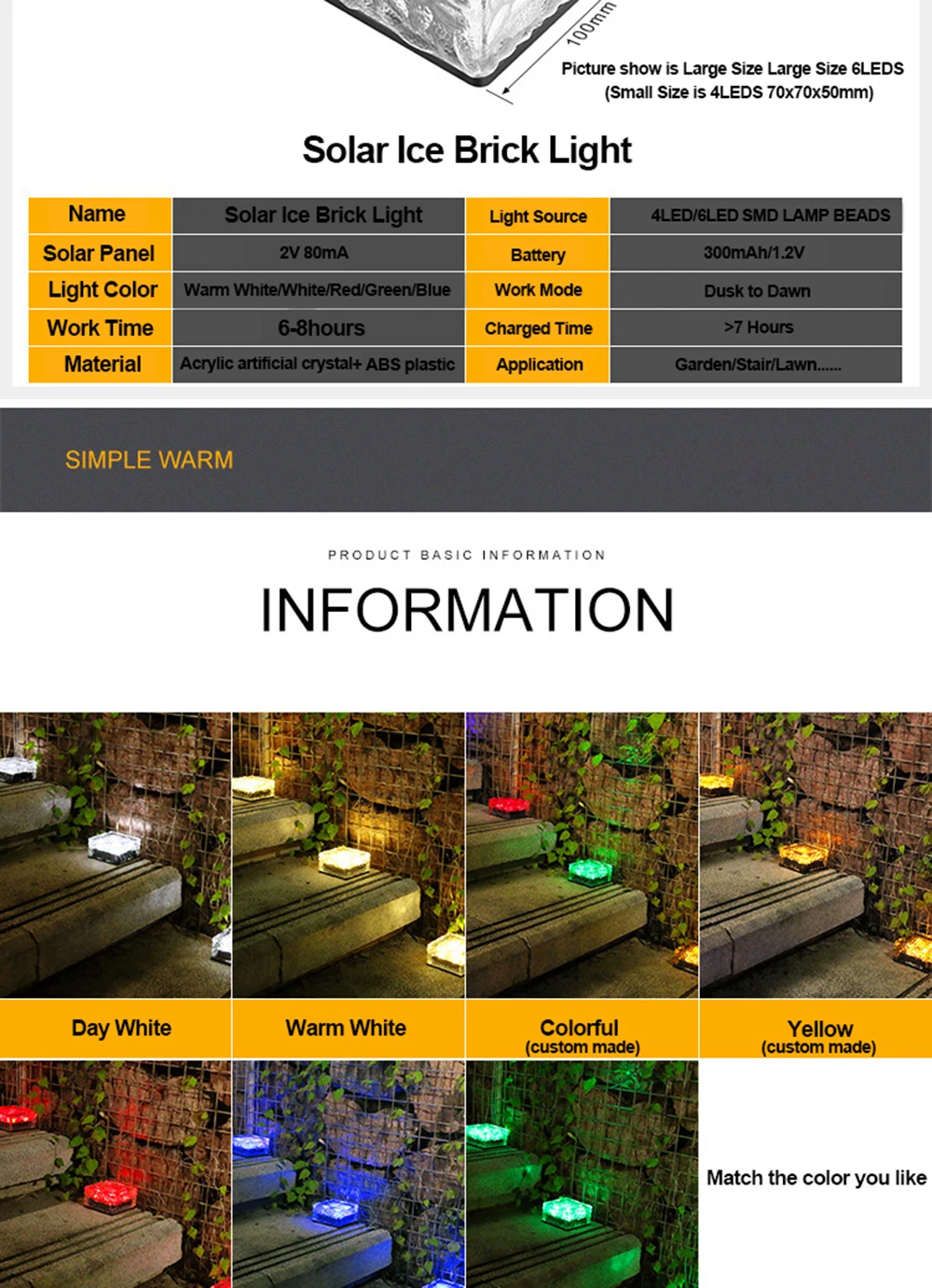 Ледяной куб, Садовый Солнечный свет, водонепроницаемая светодиодная кирпичная лампа, уличный светильник для лестницы, шага, солнца, для двора, дерева, ландшафта, украшение для патио