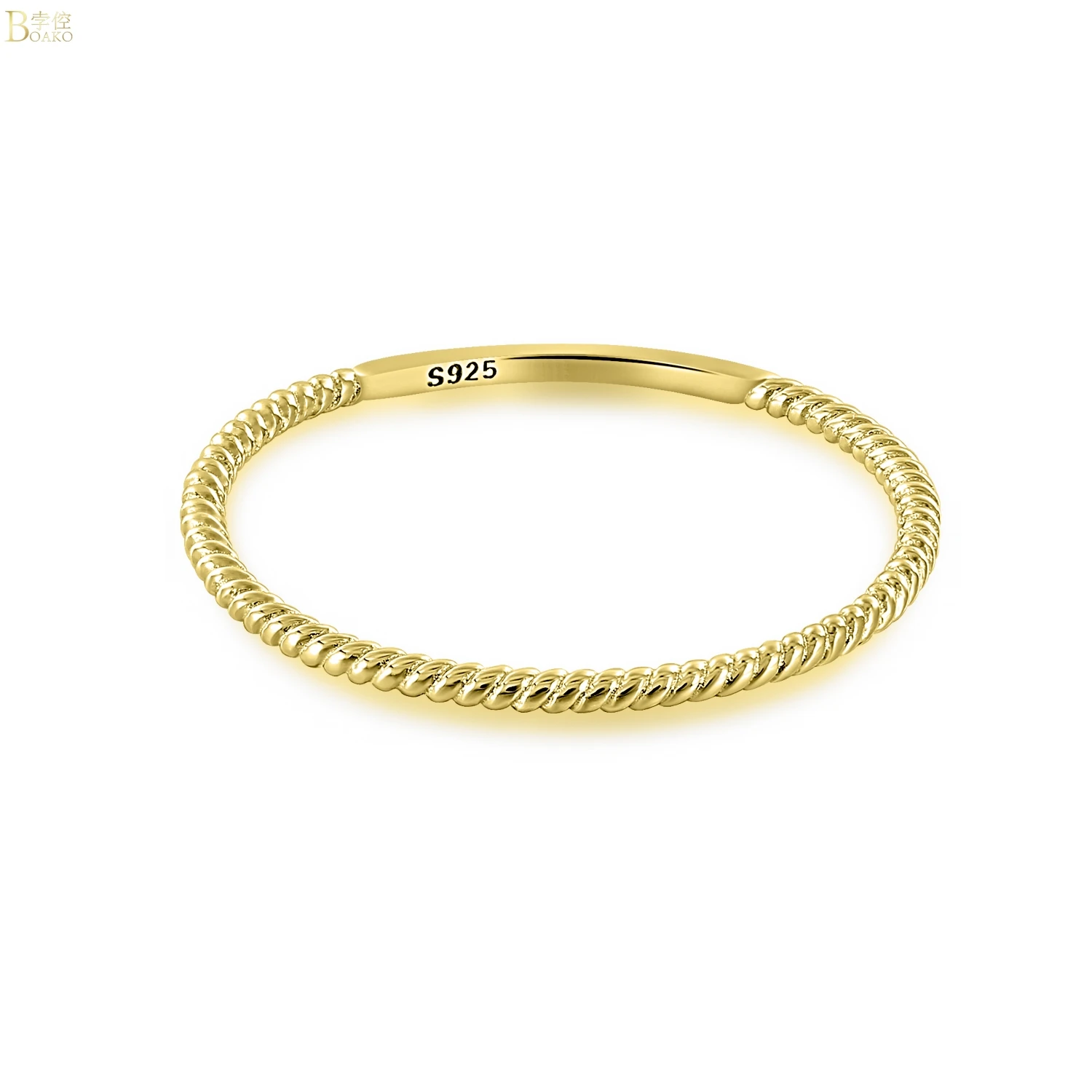 BOAKO модные минималистичные сапоги 925 Серебряные кольца для женщин простой золотистый тонкое кольцо Обручальные кольца палец, ювелирные изделия в качестве подарка