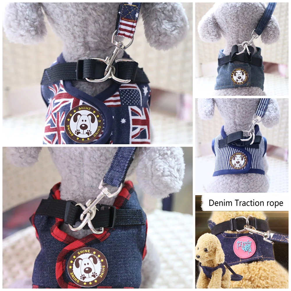 Модная Регулируемая шлейка для маленьких собак, ошейник, дышащая шлейка с поводком для щенков, чихуахуа, аксессуар для собак, мопс