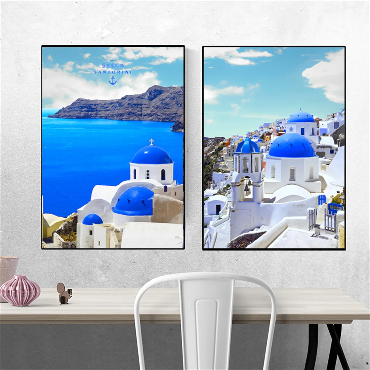 Санторини синяя крыша греческая парусина плакат гостиная картина домашний Декор без рамки