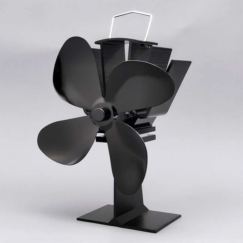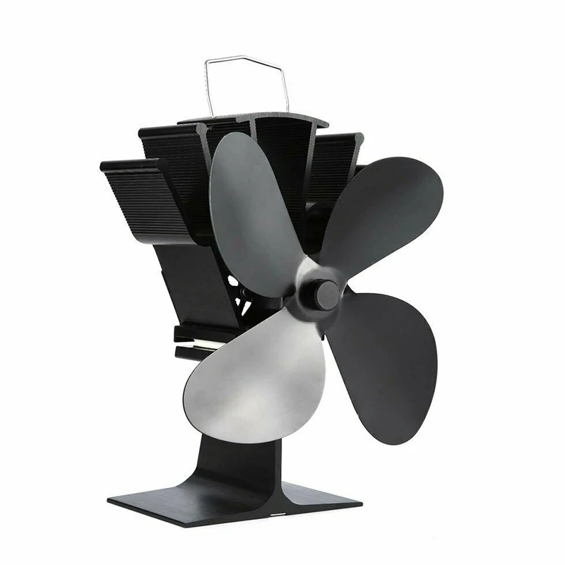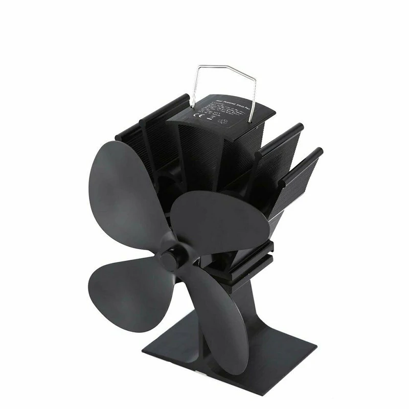 Черный вентилятор для камина 4 лезвия Вентилятор для печи, работающ...