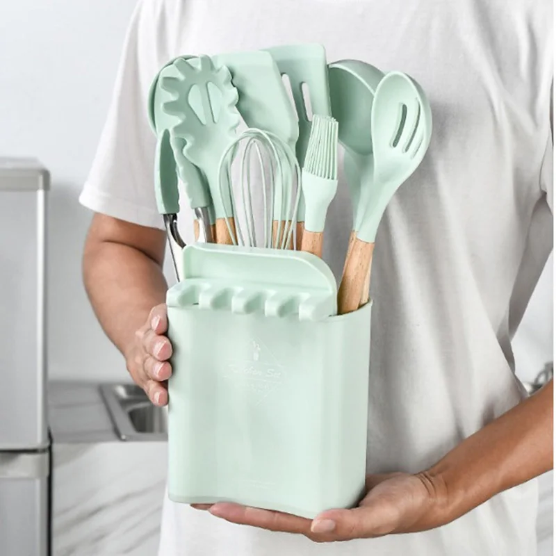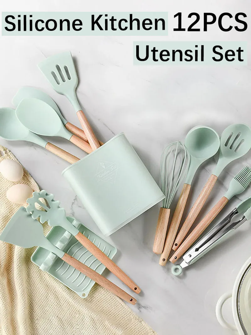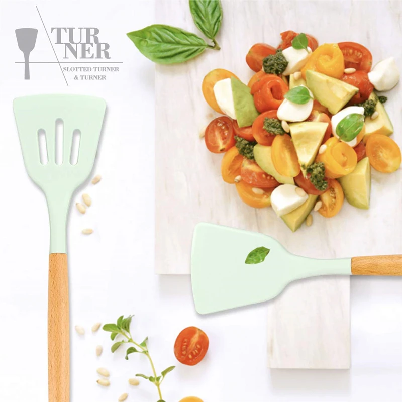 Силиконовая кухонная утварь, лопатка, ложка, набор для барбекю, термостойкая деревянная ручка, ковш для супа, кухонные аксессуары, повар-помощник