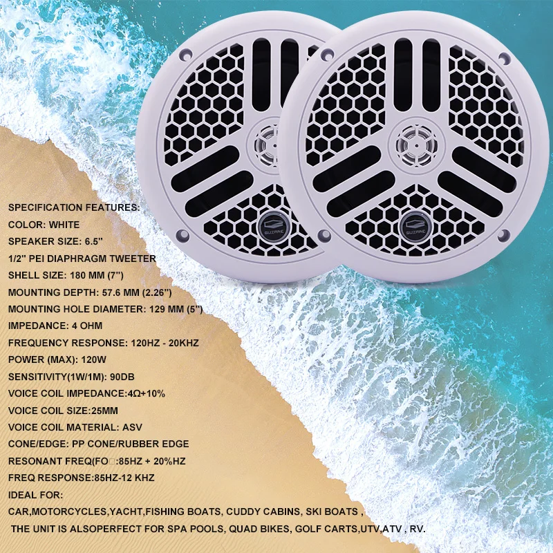 Водонепроницаемые морские колонки, 6,5 дюйма, 2 способа прослушиван...