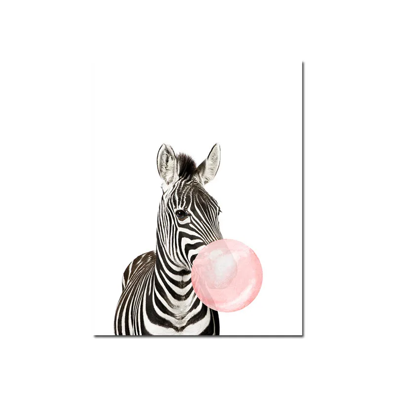 Милый жираф постер с зеброй детская комната выдув розовые пузырьки ...