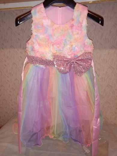Красивый, как на фото, он отлично смотрелся на малышке, цвета очень красивые и помпезные.