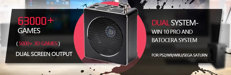 Super console PC Box поддерживает s Win10 Pro + Batocera игровая система, Предустановленная 63000 + игры (5000 + 3D игры), поддержка s для PS3,PS2, Wii, Wii u, Gamecube, PSP..., поддерживает игры в онлайн-игры, двухканальный дизайн, работает быстрее, приносит хорошую игру и использует опыт. Поддержка 2,4G/5G Wi-Fi, LAN, Bluetooth; Поддержка одновременного выхода с двойным экраном s. Вы можете смотреть фильмы и играть в игры одновременно.