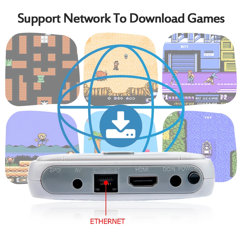 Флуоресцентный Поддержка подключения к сети/Wi-Fi, вы можете добавить классические игры, которые вы хотели, аркадные ретро-игры, спорт, борьба, сценария игры и многое другое. Вы также можете подключиться к телевизору и проектору, чтобы получить лучший игровой опыт через LAN/WIFI.