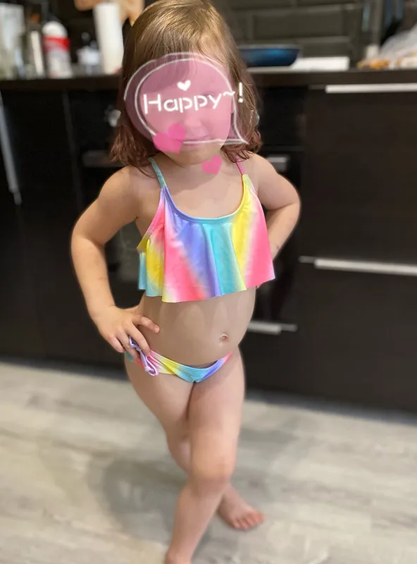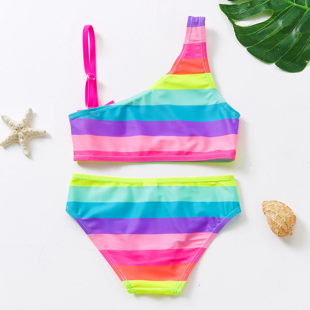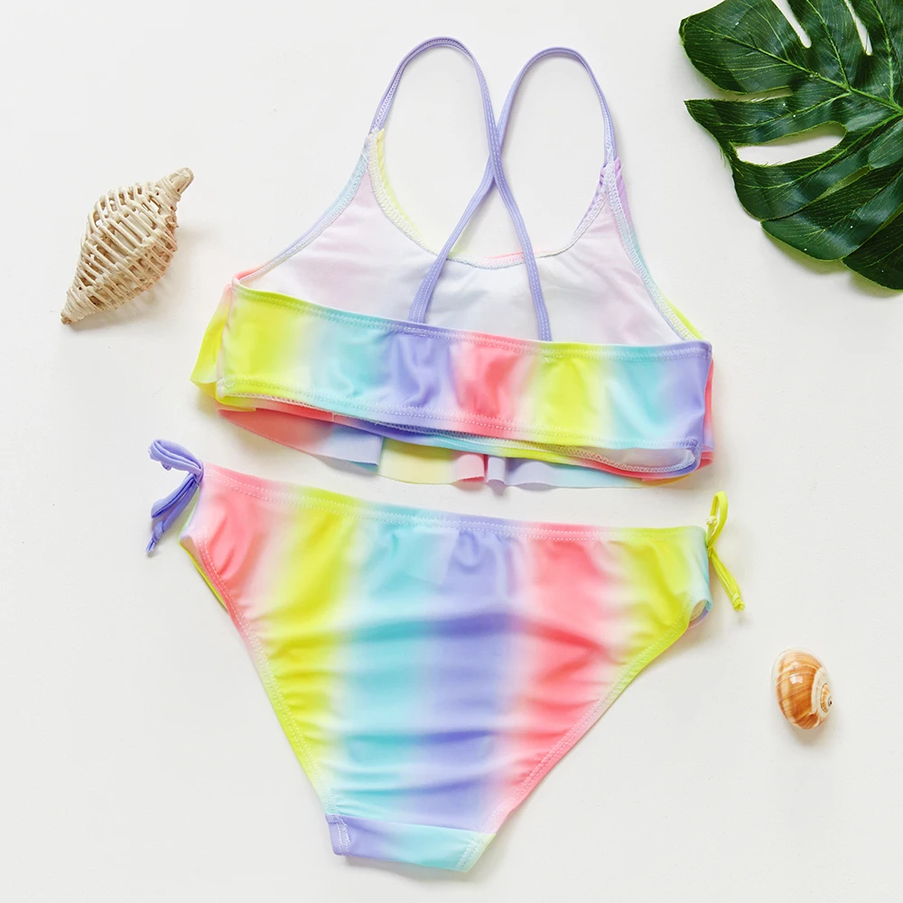 Купальник для девочек-подростков, комплект бикини из двух предметов, детский купальник с радужным принтом, детская пляжная одежда, купальный костюм, От 3 до 14 лет