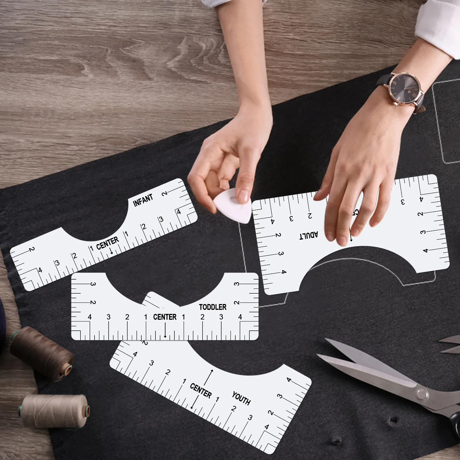 4 шт., линейка для выравнивания футболок, виниловая линейка для футболок, инструмент для выравнивания, центральный дизайн, стандартная линейка для выравнивания HTV S7