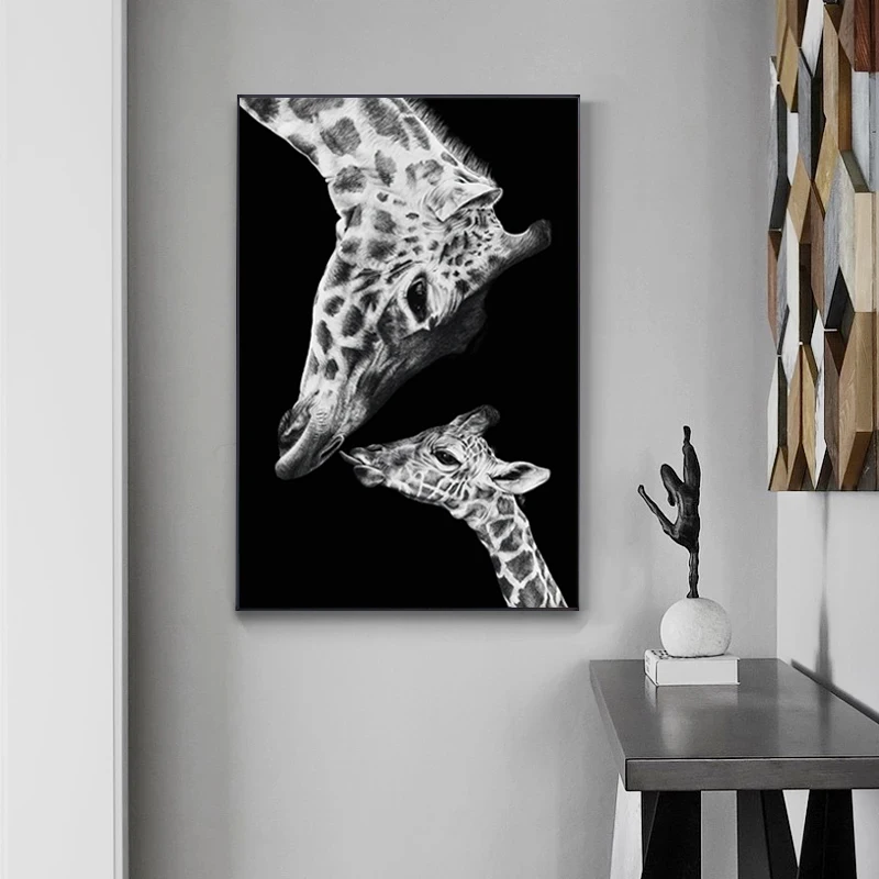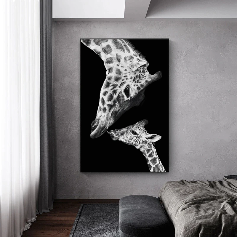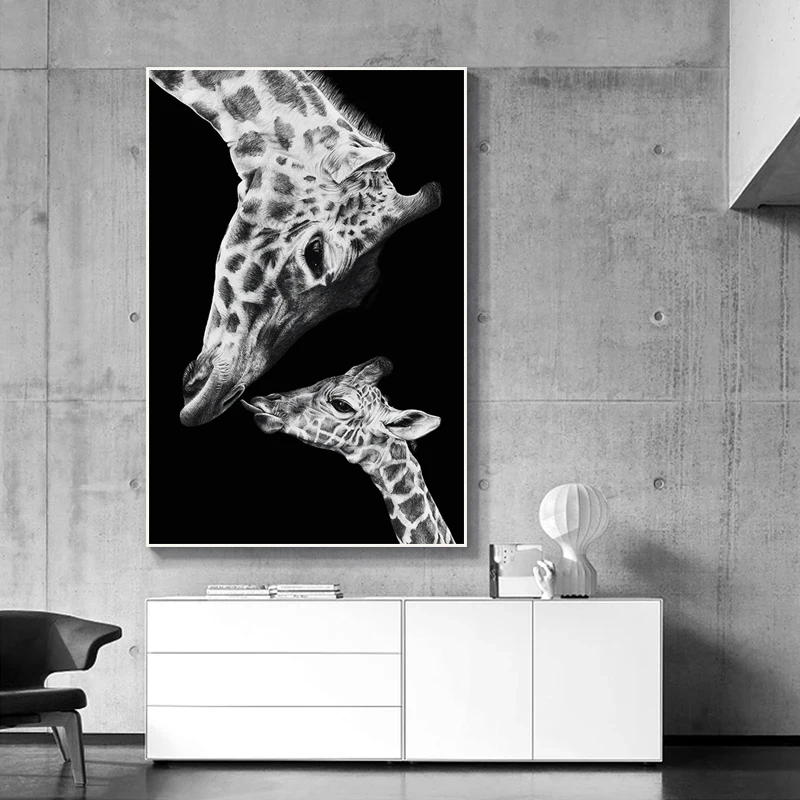 Черно-белая картина с изображением жирафа на холсте тема материнской любви фотография стен картины для домашнего декора