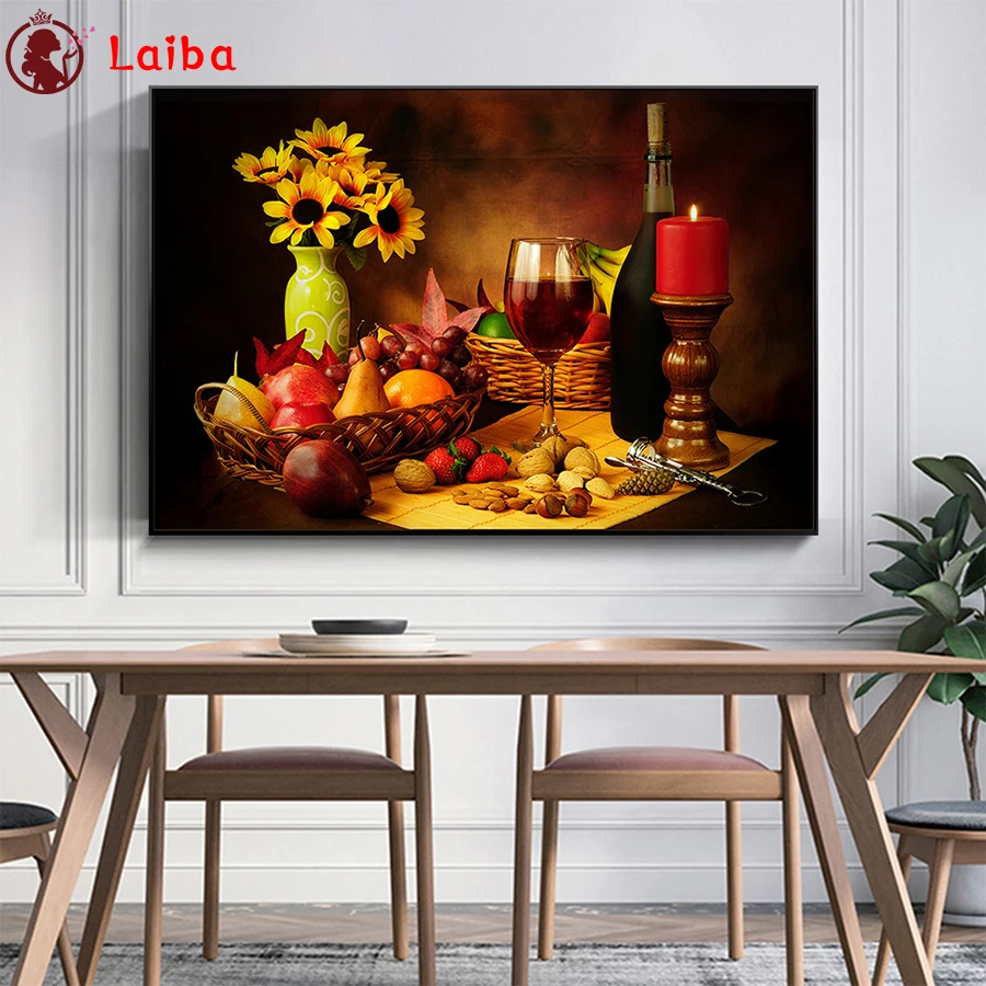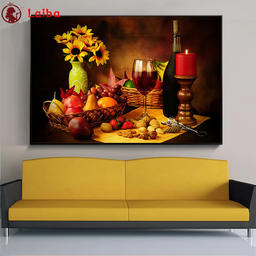 Алмазная вышивка, абстрактное искусство, фрукты, вино, полная квадр...