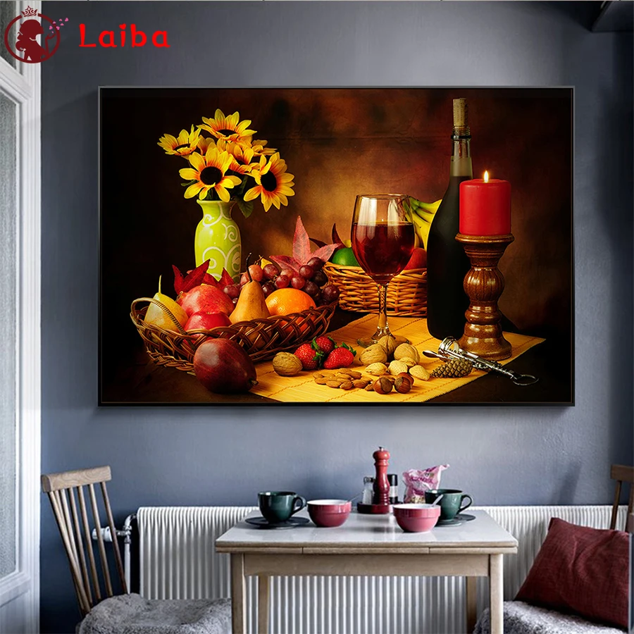 Картина из квадратных кристаллов, картина из хрусталя, для украшения кухни, вина, ресторана, алмазная вышивка 5d сделай сам