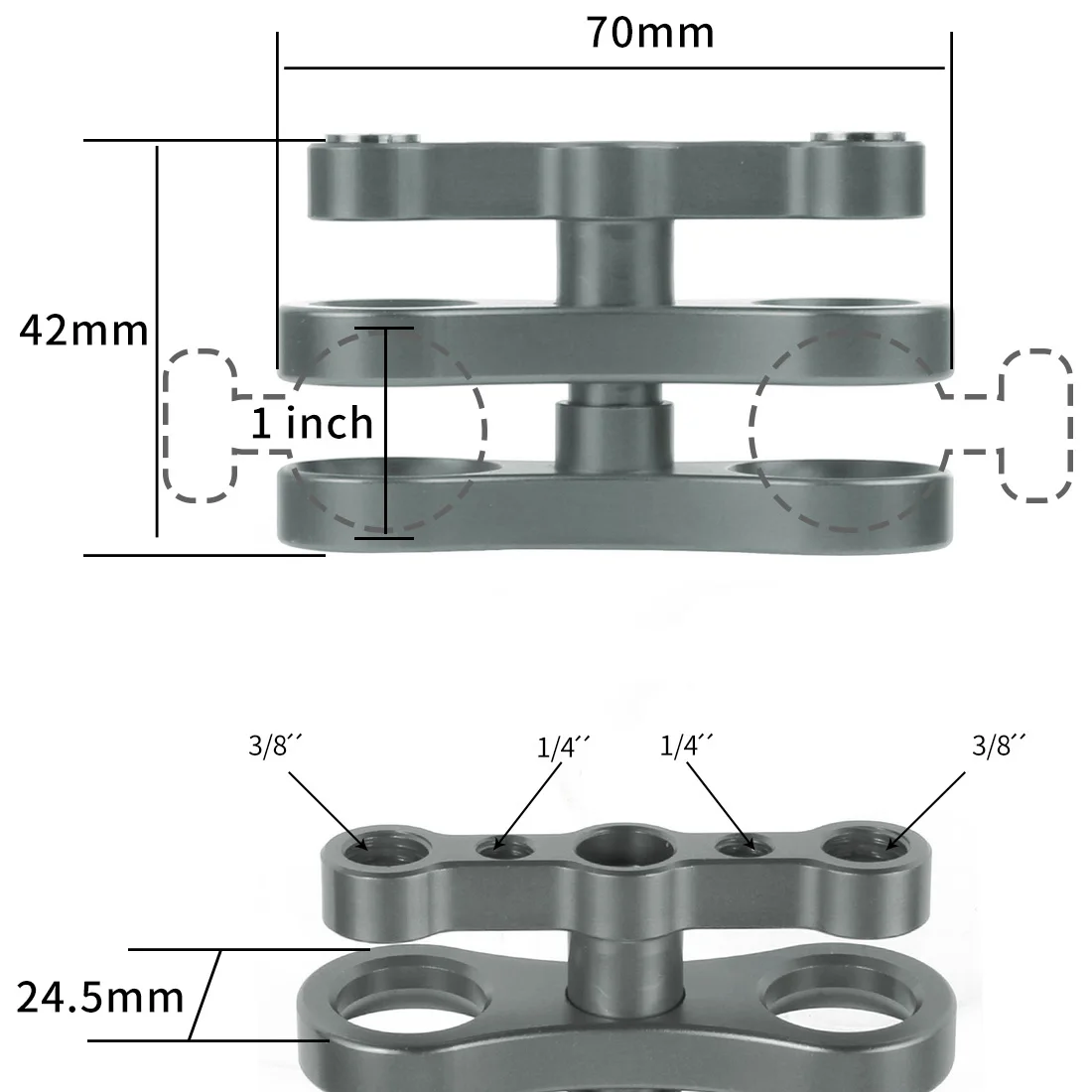 Изготовлен из легкого алюминиевого сплава материал: Устойчивый к коррозии алюминиевый сплав (Жесткий анодированный корпус) отвечает высокоточным и прочным требованиям.Функция:Идеально соединен с шаровой головкой, чтобы подключить заполняющий светильник, светильник для дайвинга или экшн-камеру GoPro и т. д. при нормальной съемке и подводной фотографии.