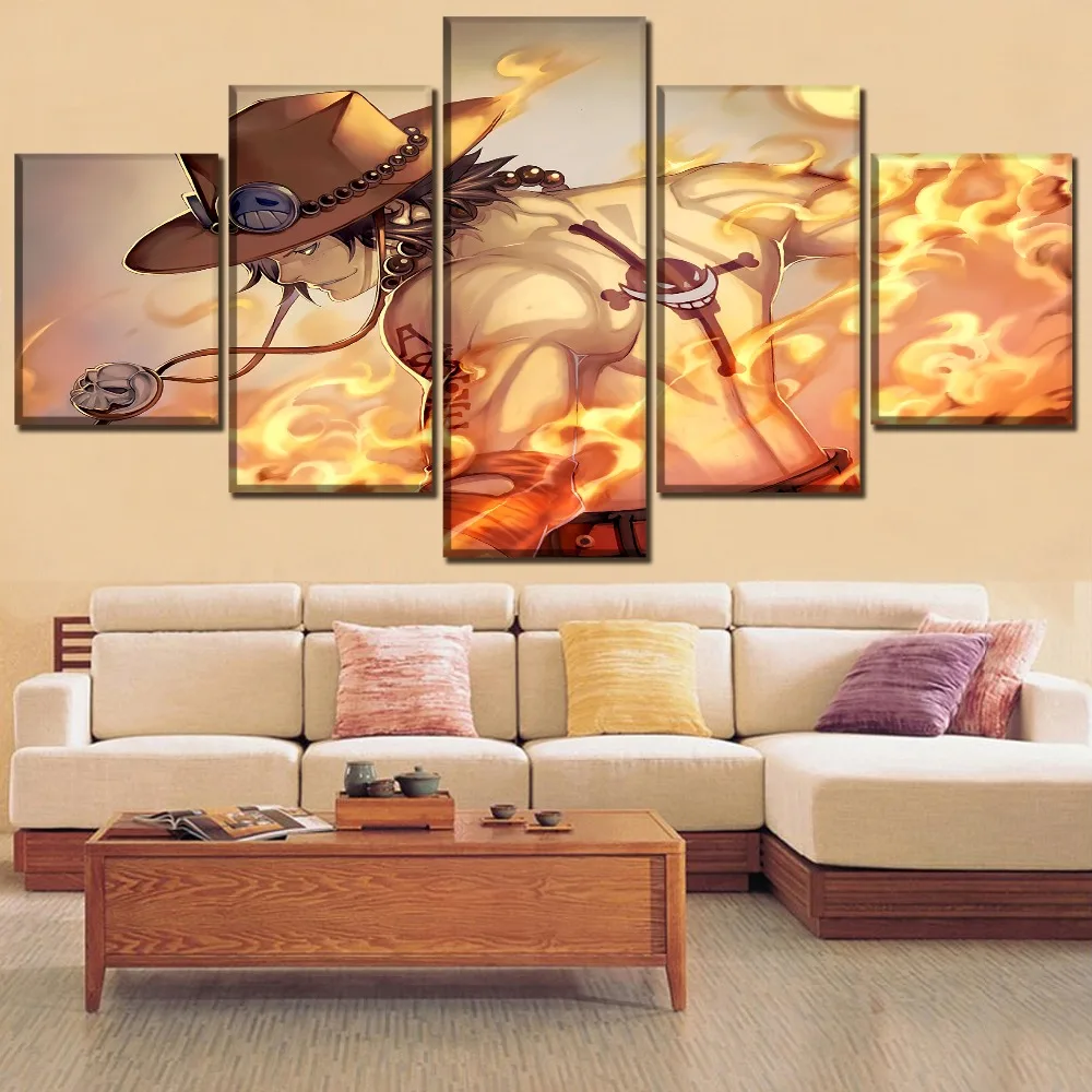 Домашний декор один комплект каркас или без рамки 5 панелей Аниме One Piece Portgas D. Ace плакат Современная Настенная Картина на холсте