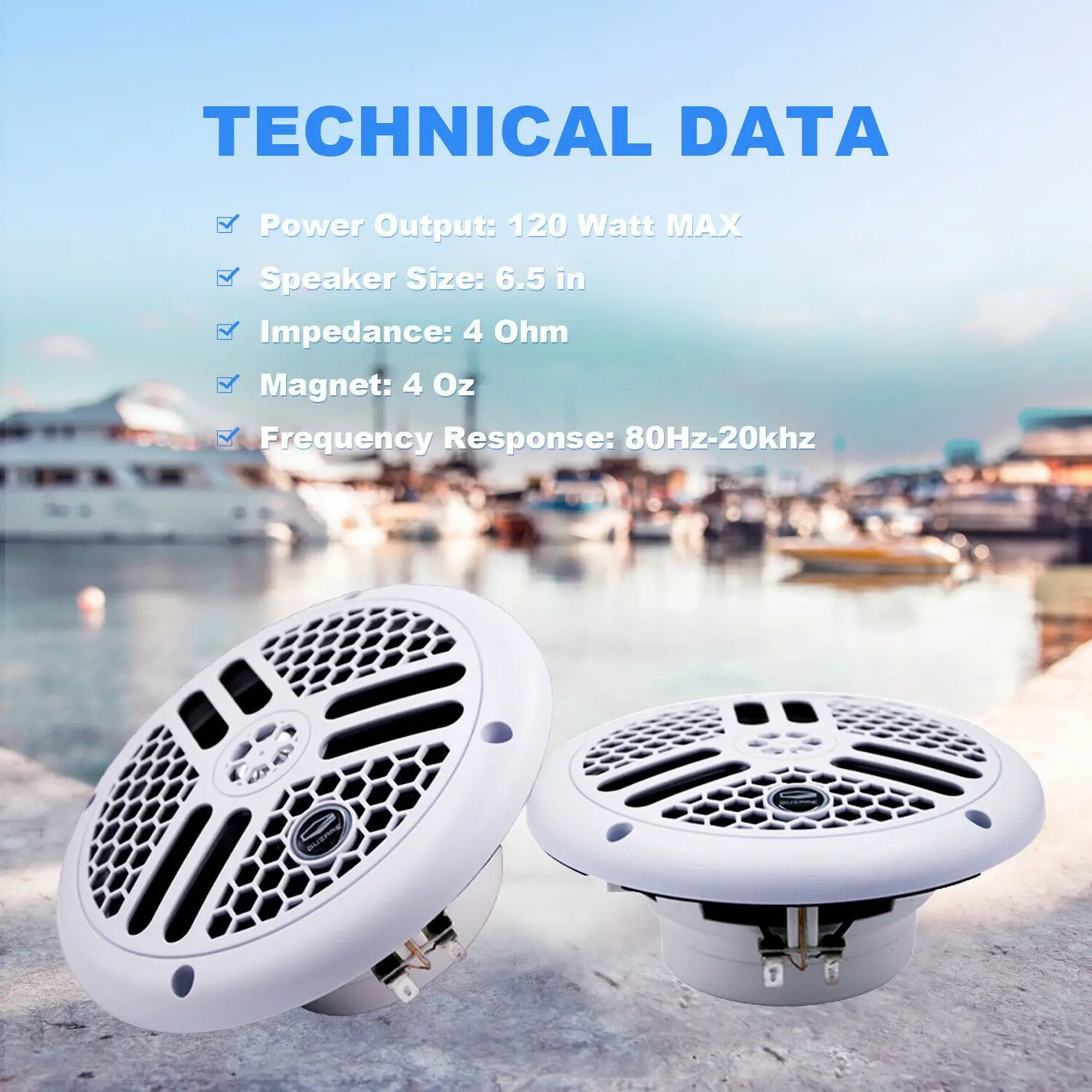 Динамики Морские водонепроницаемые с УФ-защитой, 6,5 дюйма, 2 канала, 240 Вт