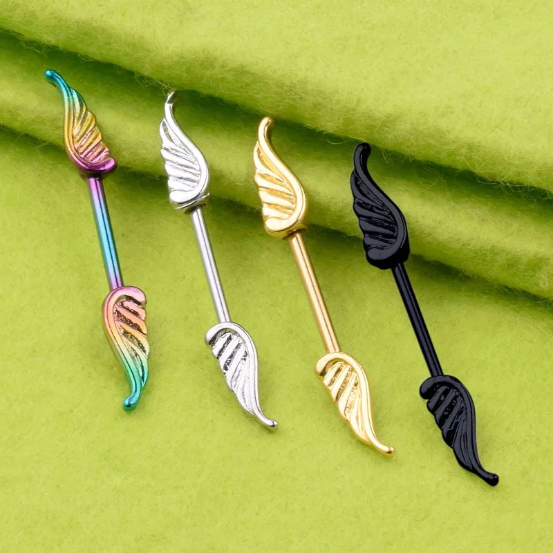 Модное женское кольцо для сосков, двойное перо с крыльями, медицинский стальной прямой стержень, щиток для сосков, кольца для пирсинга, ювелирные изделия, подарок d88