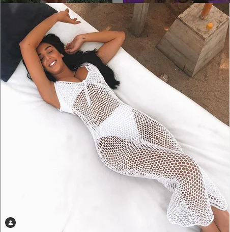 Платье женское Сетчатое пляжное длинное в клетку, шикарная прозрачная туника без рукавов, пикантный сетчатый купальный костюм, длинное платье es, на лето