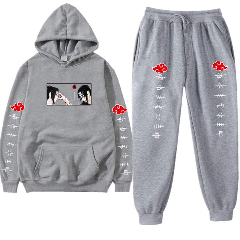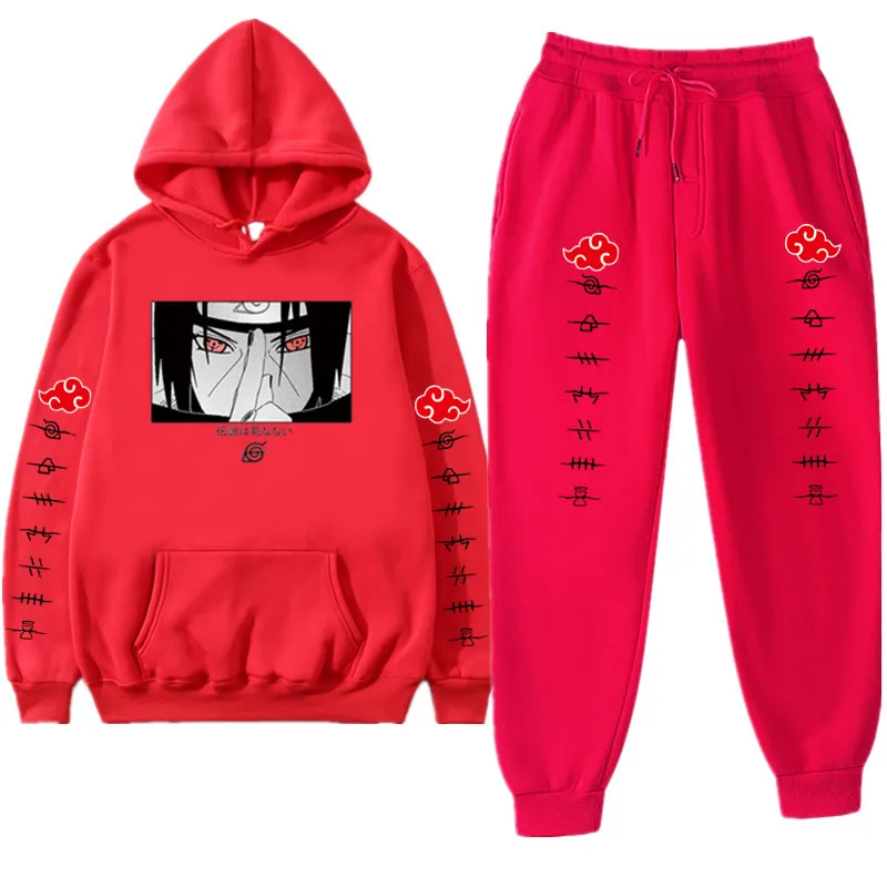 Спортивный костюм для мужчин и женщин Akatsuki Uchiha Ltachi, свитшот с капюшоном и штаны на кулиске, комплект из 2 предметов, Осень-зима