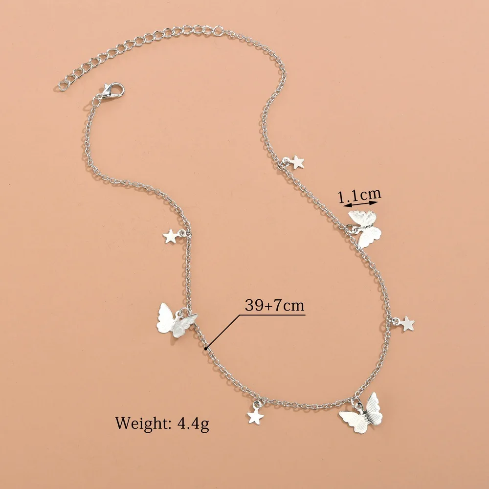 Тип ожерелья: ожерелье с подвескойТип цепи: цепочка для ключицы бабочкиМатериал: сплавПодарок для: девочек/женщин/мам/дам/фрэндовХарактеристики продаж: 1 шт.Цвет: Золотой/Серебряный