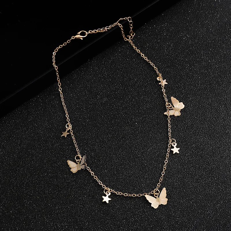 Женская цепочка с бабочкой, в полоску, Золотая Звезда, многослойное ожерелье с подвеской